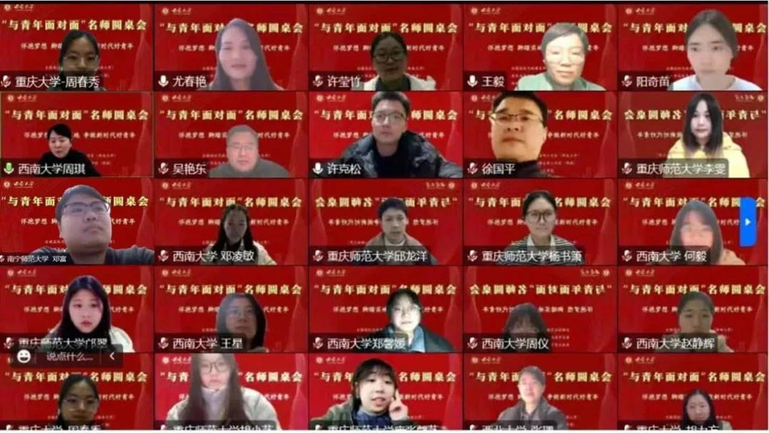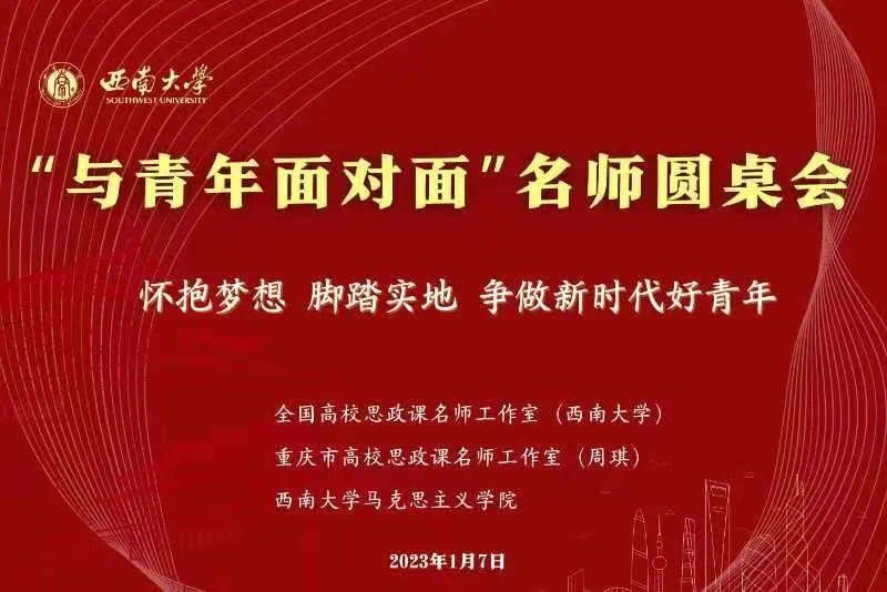 为进一步形成关心青年学生成长、成为学生的知心人、热心人、引路人的良好氛围,2023年1月7日,全国高校思政课名师工作室(伟德victor1946)、重庆市高校思政课名师工作室(周琪)、bv伟德国际1946举办“与青年面对面”名师圆桌会。会议邀请重庆市团校党委委员、副校长王毅,重庆市教委宣教处副处长尤春艳,伟德victor1946学工部部长许克松,伟德victor1946辅导员许莹竹担任嘉宾和人生导师,重庆大学、伟德victor1946、重庆师范大学、南宁师范大学等学生代表参加,全国高校思政课名师工作室(伟德victor1946)负责人、bv伟德国际1946周琪教授担任主持。