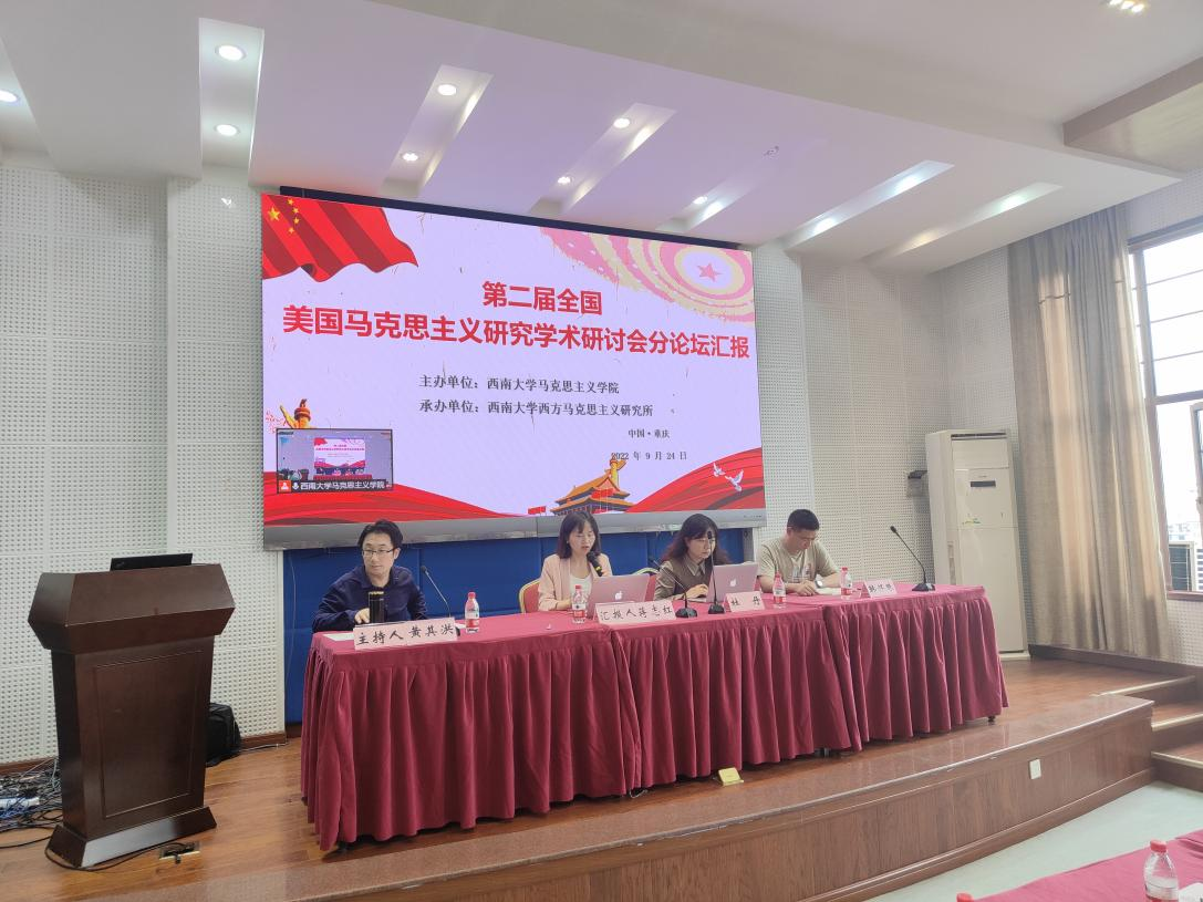 第二分论坛中,中国人民大学罗骞教授以罗斯福新政为切入点探讨了其对美国马克思主义发展的重要影响;上海师范大学吴宁教授则对美国生态马克思主义的基本观点、立场以及流派进行了细致的梳理和整体性的阐述;南开大学王元副教授主要论述了美国左翼思想家对当代资本主义政治的批判并以此阐释批判理论在美国的新发展;华南理工大学朱丹讲师讨论了马克思恩格斯在其著作中对美国及资本主义世界动态关系的揭示和批判;中央民族大学李晶讲师则以艾利斯·杨历史性不正义思想为考察的核心探讨正确看待历史性不正义的立场与方法;中国人民大学郑策博士对美国共产党的种族斗争进行了具体的阐述和分析并以马克思主义的视角对美国种族主义进行了批判;北京大学吴易浩博士聚焦于美国马克思主义者奥康纳对国家双重职能理论的发展以马克思主义的视角指出这是一种从形式平等到本质矛盾的转变;伟德victor1946李作纯博士对哈特与奈格里提出的后现代语境中的新政治主体即诸众的政治逻辑脉络进行了清理和再思考,以非物质劳动、诸众主体和共有的共产主义三大要点对诸众理论进行了更深层次的把握;清华大学刘昱贤博士围绕美国工人运动的三种倾向即工会主义、工团主义以及合作主义倾向具体剖析了马克思主义在早期与美国工人运动结合并深刻发展的特征;南开大学刘超群博士则基于詹姆士《实用主义》的哲学分析对美国实用马克思主义这一流派思想的开放性进行了具体分析与阐释;吉林农业大学梁良硕士基于对《后现代主义、或晚期资本主义的文化逻辑》一书的文本解读论述了后现代境遇中的马克思主义阐释学;山东大学段昀辉硕士将布鲁德尼与阿尔都塞关于马克思学说“断裂论”的不同观点进行了比较,阐释了马克思主义学说在美国的独特发展特点;华南师范大学李家琦硕士以马克思主义的“断裂论”为线索对罗伯特·C·塔克的马克思主义神话理论进行了论述;佳木斯大学姜皓天硕士对美国马克思主义的当代价值进行了细致的归纳和总结;中国政法大学魏东捷硕士则对乔治·麦卡锡关于马克思主义的社会伦理思想的解读进行了述评。