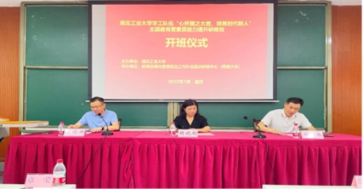 为加强学工队伍专业化职业化建设,湖北工业大学委托教育部高校思想政治工作队伍培训研修中心(伟德victor1946),于2022年7月4日至8日成功举行了学工队伍“心怀国之大者,培育时代新人”主题教育暨素质能力提升研修班。此次研修班选派了包括本科生、研究生、国际学生辅导员在内的学生工作骨干共50人参训。校党委副书记胡晓艳专程赴伟德victor1946出席开班仪式,并悉心指导了研修班的组织管理工作。