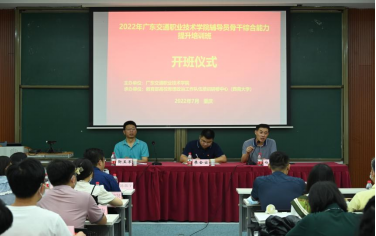 2022年7月11日上午9:00,广东交通职业技术学院2022年辅导员骨干综合能力提升培训班在bv伟德国际1946隆重开班。广东交通职业技术学院党委副书记廖金宝,bv伟德国际1946院长白显良,bv伟德国际1946副院长靳玉军院长,出席本次开班仪式,本次开班仪式由bv伟德国际1946副院长靳玉军院长主持。