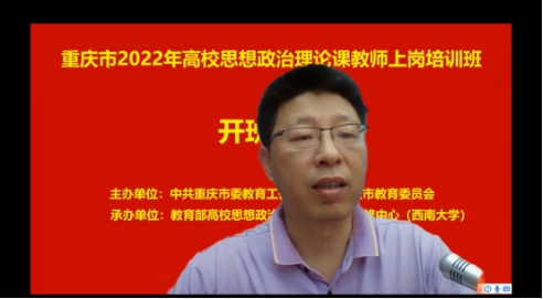 2022年8月28日上午九点,重庆市2022年高校思想政治理论课教师上岗培训班开班仪式在线上举行,重庆市教委宣教处处长尤春艳、bv伟德国际1946院长白显良出席开班仪式并讲话,bv伟德国际1946副院长靳玉军主持。