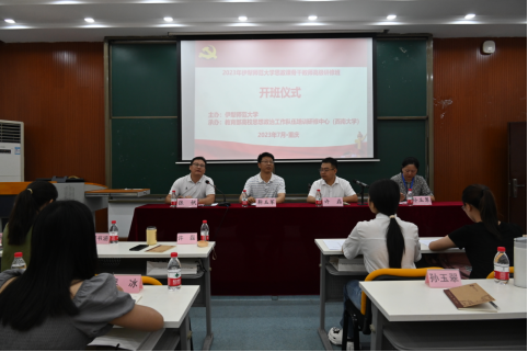 7月16日上午9点,2023年伊犁师范大学思政课教师高级研修班顺利开班。伊犁师范大学bv伟德国际1946党委副书记、纪委书记许磊,伊犁师范大学bv伟德国际1946副院长孙玉翠,bv伟德国际1946副院长、教育部高校思想政工作队伍培训研修中心(伟德victor1946)办公室主任靳玉军出席开班仪式,bv伟德国际1946社会服务办公室主任张帆主持开班仪式。