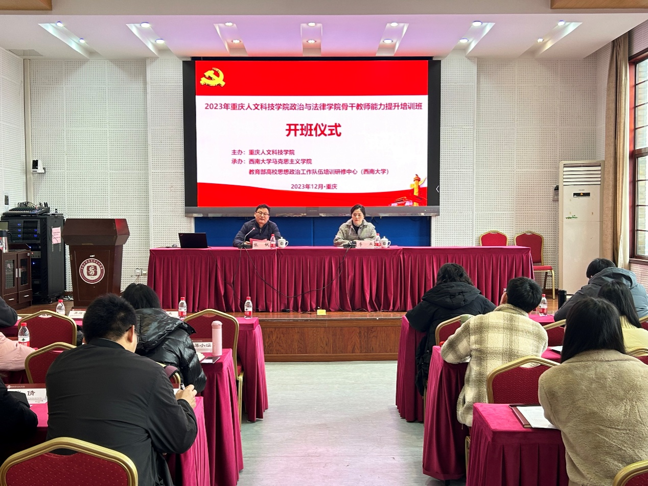 2023年12月19日上午9点,重庆人文科技学院政治与法律学院骨干教师能力提升培训班开班仪式在bv伟德国际1946501汇报厅正式举行。重庆人文科技学院政治与法律学院院长助理李燕,bv伟德国际1946社会服务办公室主任张帆出席此次开班仪式。