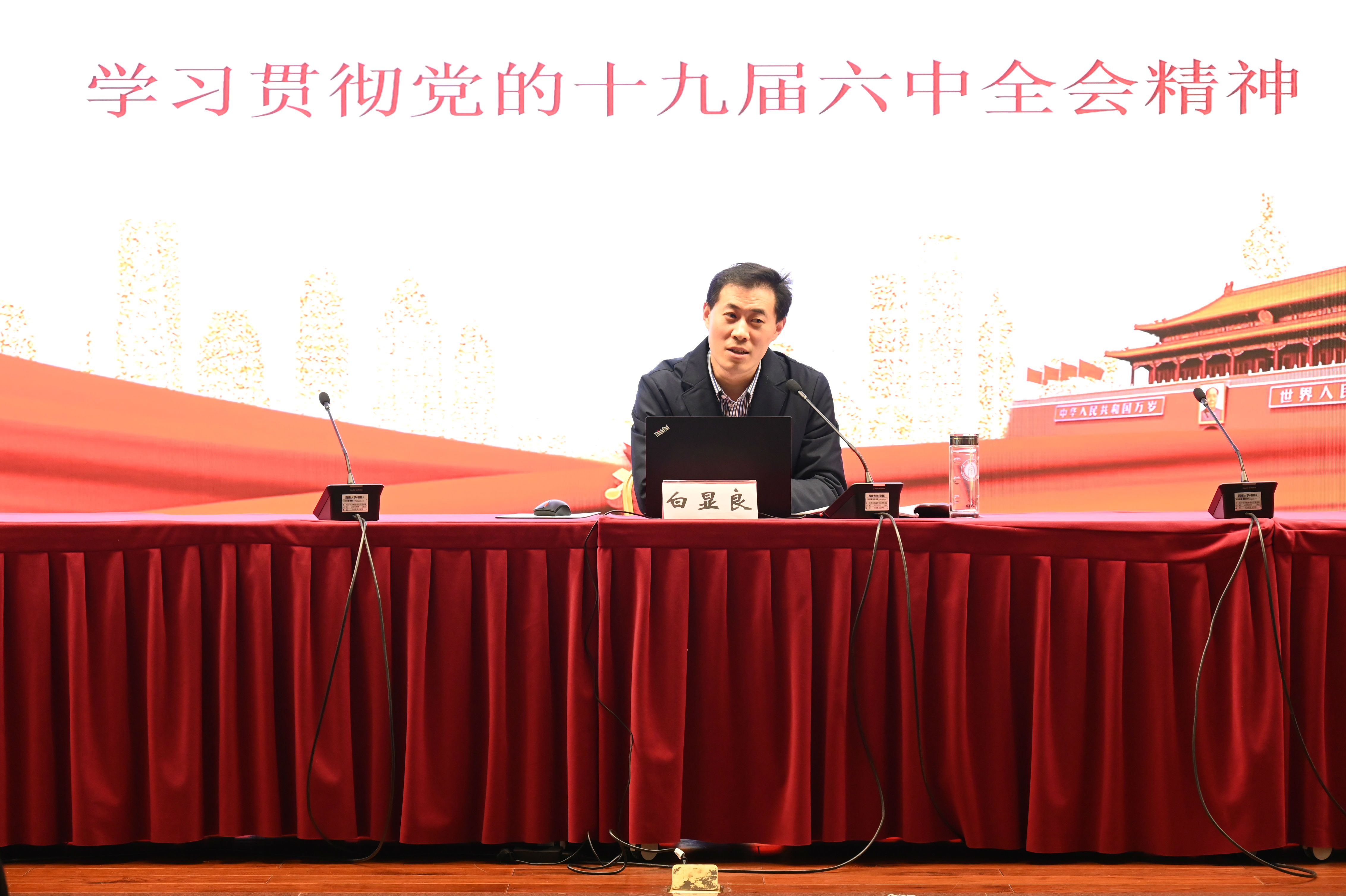 11月21日上午10点,中共bv伟德国际1946委员会分党校开班第四十一期培训班专题党课第一讲在bv伟德国际1946505报告厅举行。学校党委委员、学院院长、党委副书记白显良为全体学员讲授了题为“学习贯彻十九届六中全会精神”的专题党课。