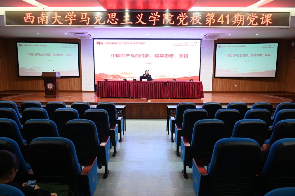 11月5日晚上7:00,中共bv伟德国际1946委员会分党校第四十一期培训班第七讲在bv伟德国际1946505报告厅举行。伟德victor1946党校办公室主任余小蓉为全体学员讲述了“中国共产党的性质、指导思想和宗旨”的专题党课。