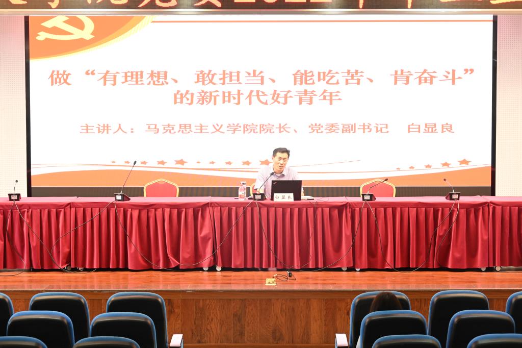 集中教育培训第一课,由学院院长、党委副书记白显良作《做“有理想、敢担当、能吃苦、肯奋斗”的新时代好青年》专题党课。白显良院长结合习近平总书记七年知青岁月的奋斗故事,向全体毕业生党员阐述了新时代好青年十二字标准的意义、内涵与要求,引导全体毕业生党员要做有理想的青年,坚持将个人追求与社会期待、将个人小我与社会大我相统一;要做敢担当的青年,要担责任,对自身的社会责任和角色要有清晰的认识,也要担重担难担险,要有敢于闯难关,要有敢于攻坚克难的意志和能力;要做能吃苦的青年,要不断锤炼为了实现青年梦想而敢于吃苦的顽强意志;更要做肯奋斗的青年,将自身的理想抱负用实际行动书写在祖国大地上。最后,面对即将步入社会、走上新征程的全体毕业生党员,白显良院长满怀深情的赠出十二句人生箴言,激励全体毕业生党员开拓更广阔的未来。