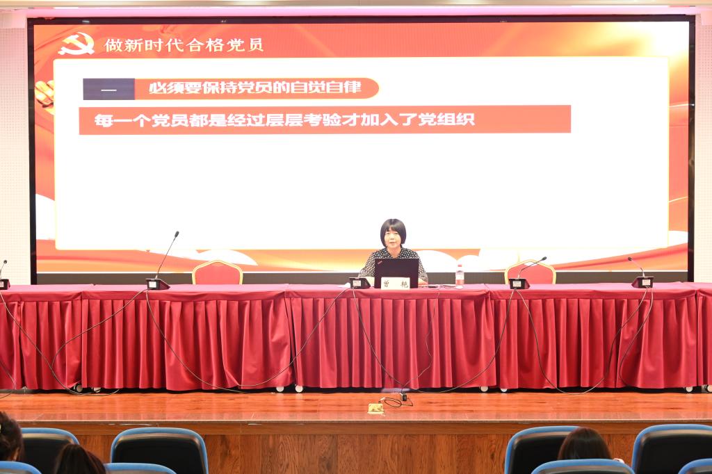 集中教育培训第二课,由学院党委副书记曾艳作《做新时代合格党员》专题党课。曾艳副书记从党员佩戴党员徽章切入,指出了做新时代合格党员的六个必须:一是必须保持党员的自觉自律,自觉保持对党忠诚,始终保持初心不改;二是必须牢记党的历史,永远不忘党的历史,时刻铭记党的恩情;三是必须坚定政治信念,始终把党放在最重要的位置,保持头脑清醒,立场坚定;四是必须具有敬畏心理,自觉强化纪律意识;五是必须勇于担当负责,勇做标杆和表率;六是必须进取奉献作为、扎扎实实做好本职工作。