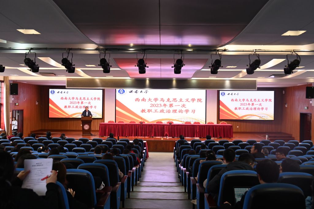 3月3日下午,学院召开2023年度第一次教职工政治理论学习。集中学习习近平总书记在学习贯彻党的二十大精神研讨班开班式上的重要讲话精神、习近平总书记在中共中央政治局第三次集体学习时的重要讲话精神以及习近平关于力戒形式主义官僚主义重要论述。学院全体教职工参加,会议由bv伟德国际1946党委书记廖晓衡主持并领学。
