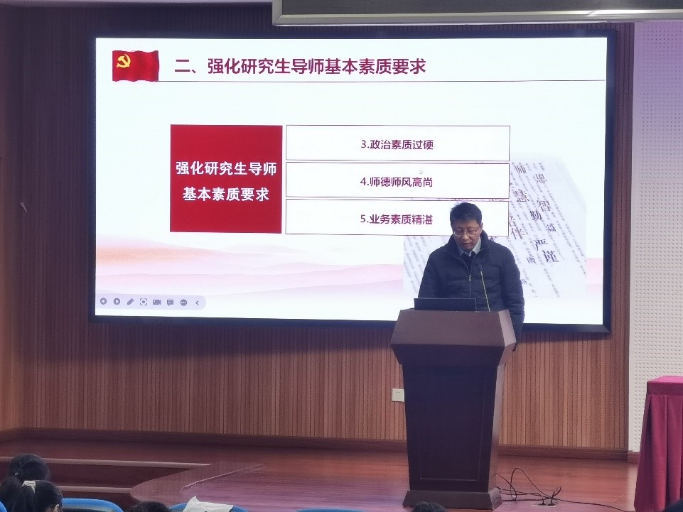 之后,靳玉军副院长带领全体教职工深入学习《教育部关于全面落实研究生导师立德树人职责的意见》《研究生导师指导行为准则》和《伟德victor1946加强研究生导师立德树人职责的实施办法》等研究生导师立德树人相关文件,明确了研究生导师是我国研究生培养的关键力量,肩负着培养国家高层次创新人才的使命与重任,因此贯彻落实导师指导行为准则,划定基本底线,对进一步完善导师岗位管理制度,明确导师岗位职责,建设一流研究生导师队伍具有重要意义。