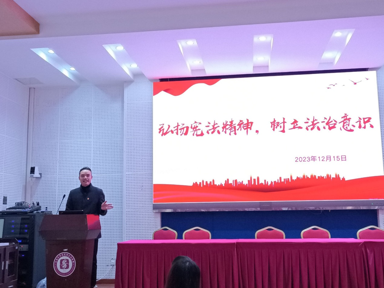 主题党课讲授环节,支部党员陶鑫同志领学“学习习近平总书记在第十个国家宪法日之际做出的重要指示精神”,并以《弘扬宪法精神、树立法治意识》为主题,并从“什么是宪法、宪法的社会作用、公民的基本权利与基本义务、什么是国家机关及国家机关分类”四个方面为全体成员讲党课。