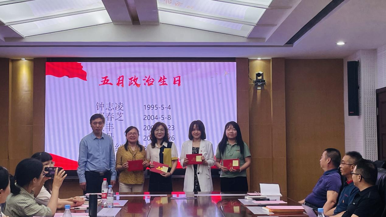 会议为党员同志过政治生日,潘洵向相关党员赠送纪念品。