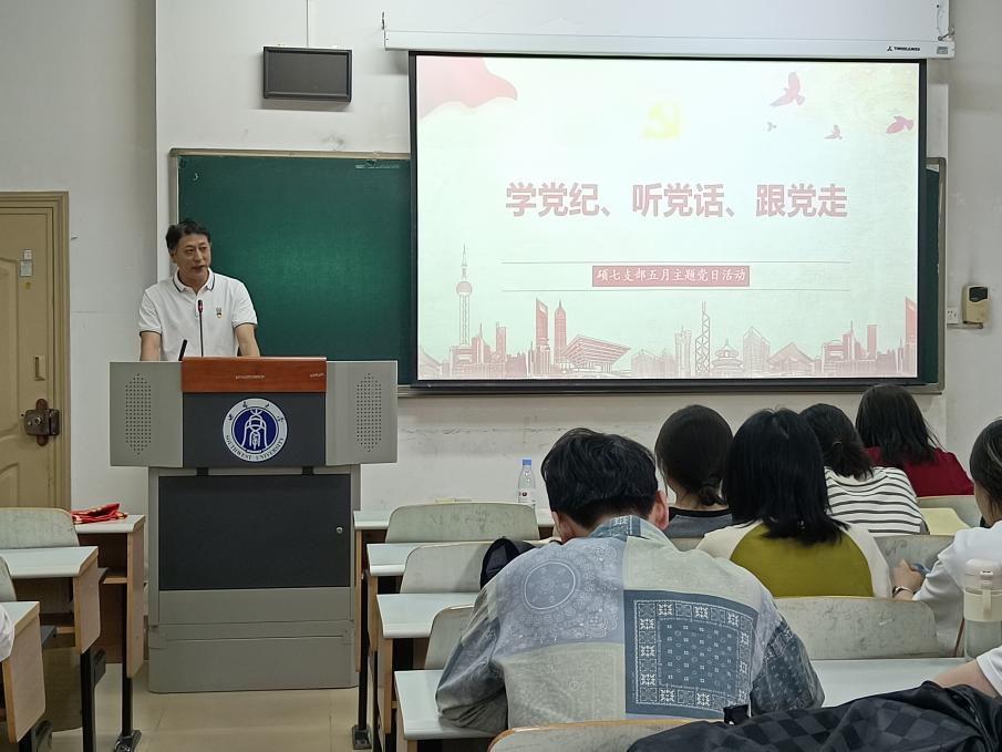 5月17日下午,bv伟德国际1946硕士生第七党支部在十教304教室开展了“学党纪、听党话、跟党走”主题党日活动。伟德victor1946培训与基础教育管理处副处长刘东升联系指导,党支部全体党员及入党积极分子参会,党支部书记黄岚主持。