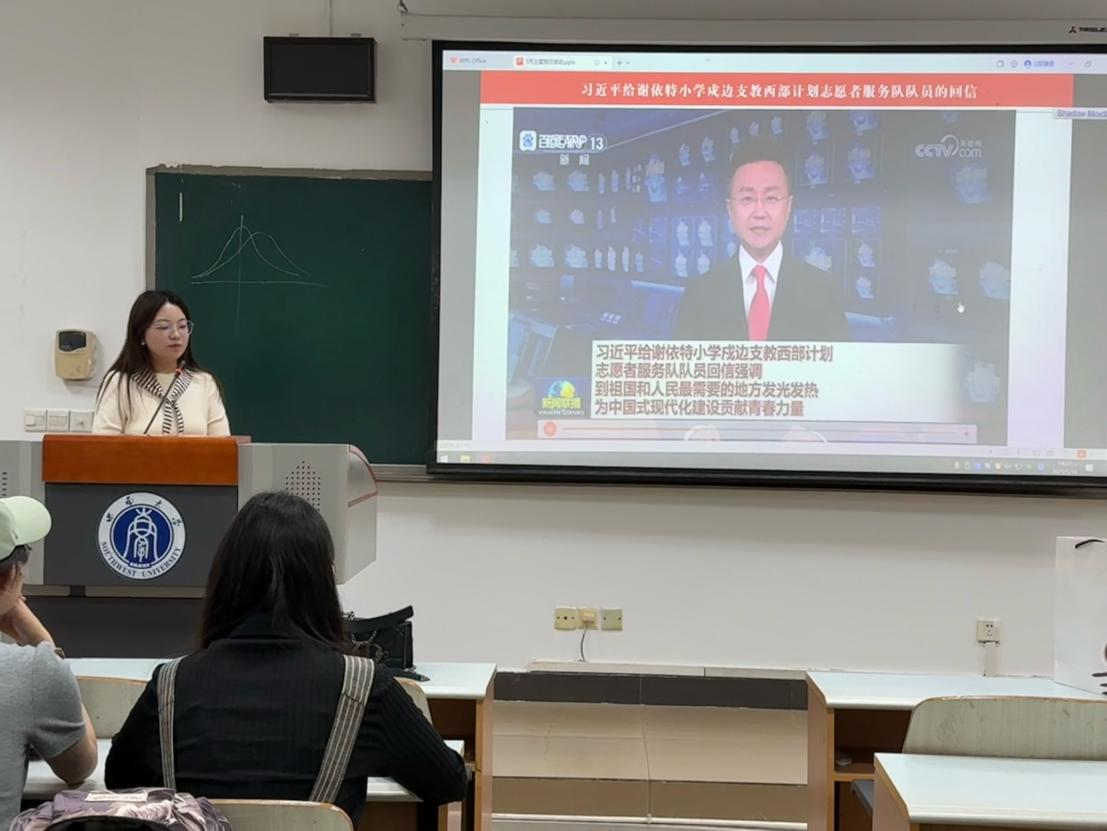 为深入学习贯彻习近平总书记给谢依特小学戍边支教西部计划志愿者服务队队员的重要回信精神,强化理论素养、增强党性修养,2025年5月16日下午,bv伟德国际1946硕士生第五党支部在十教306教室以线上连线的方式,与伟德victor1946第26届研究生支教团昌宁分队成员共同开展了主题为“扎根西部,礼赞青春”五月主题党日活动。