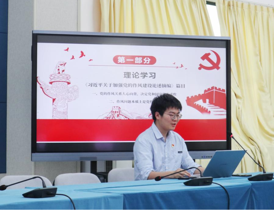 首先,是思想理论学习环节。bv伟德国际1946博士生第一党支部的蒋春芝同志带领全体党员学习《习近平关于加强作风建设论述摘编》篇目,通过“理论+案例”的形式,以习近平总书记的具体论述为基石,结合多个正反案例,从“党的作风关系人心向背,决定党和国家事业成败”和“作风问题本质上是党性问题”两方面出发,讲述了加强作风建设的必要性。