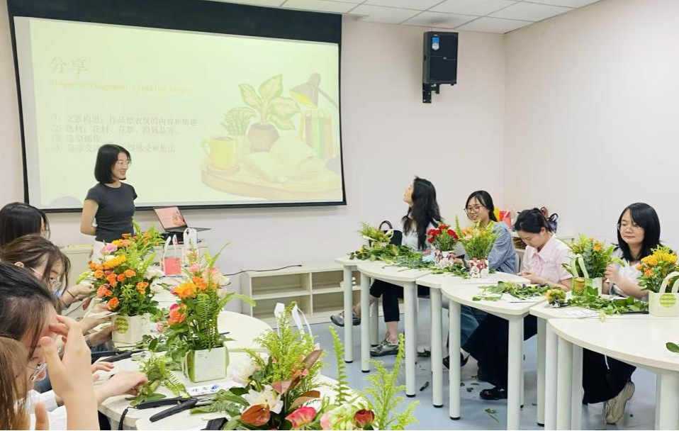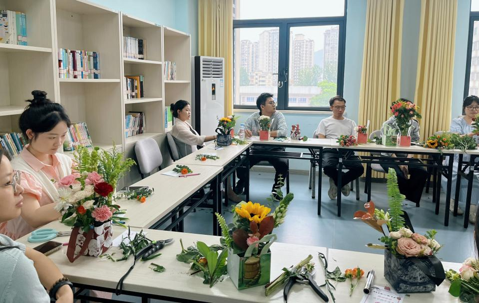 接着,是心理健康教育与压力疏导环节。党员同志分为两组进行插花团辅活动,不仅收获了新鲜的沉浸式插花体验,还在插花中感受情绪、认识情绪、排解情绪。在这个过程中,两个支部的党员纷纷表示,既能互相交流插花心得、学习心得与生活心得,增强情感联系,还能进行有效、有趣的心理疏导,希望多多举办这样有意义的、丰富多样的主题党日活动!