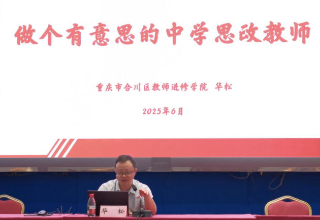 活动特邀合川区中学政治教研员、德育教研员华松作专题指导。华松老师以“做个有意思的中学思政教师”为主题,深入解读思政教师“六个要”、思政课“八个相统一”的核心要义,并强调课堂设计要兼顾趣味性与思想性。此外,华松老师提醒大家入职后要平衡教学与行政工作,并针对《逻辑与思维》等新教材教学提出“把握学情、紧扣考纲、深浅有度”的实操建议,勉励毕业生党员成为一名做人有意思、讲课有趣味、带班有价值的中学思政教师。