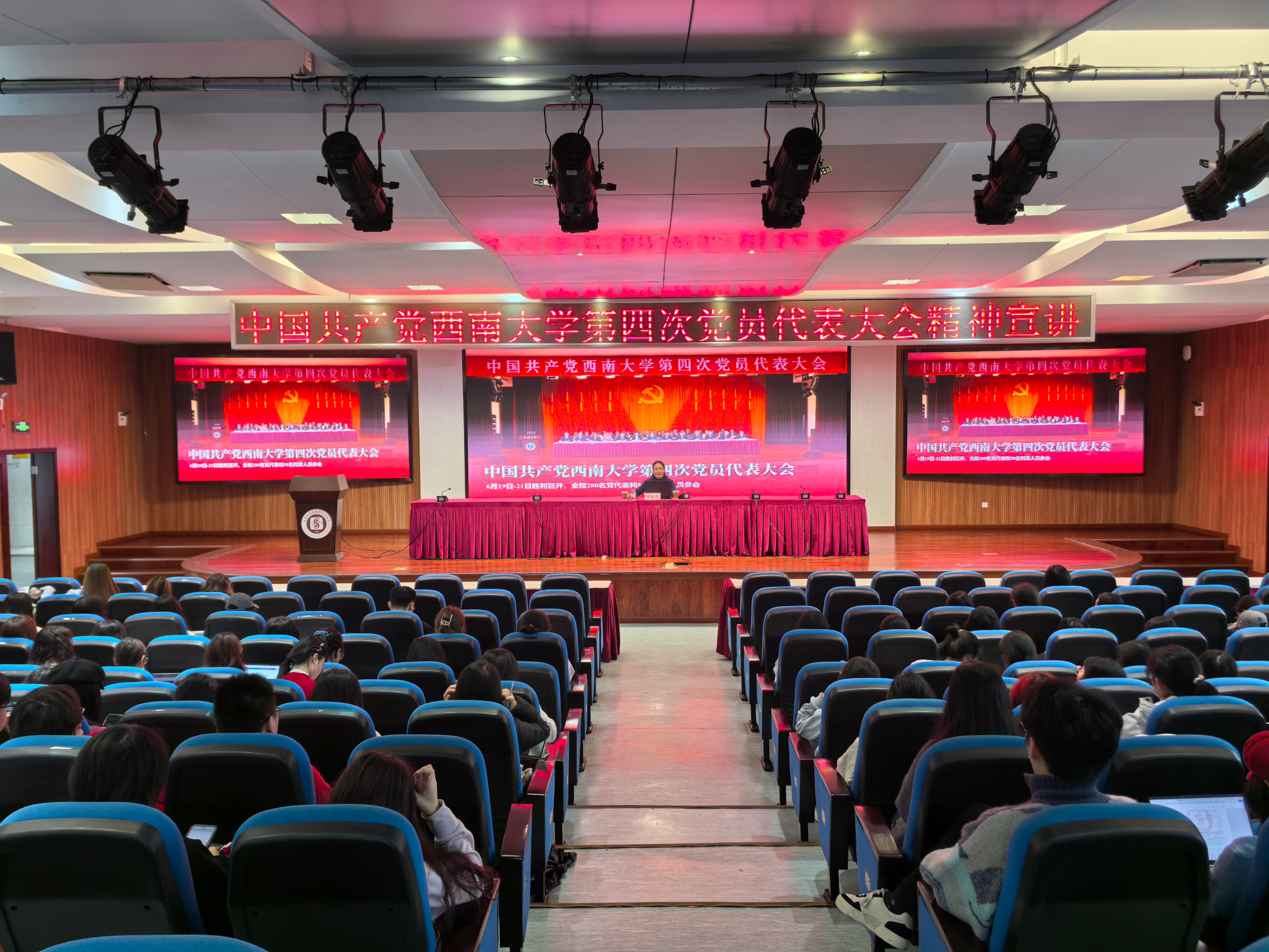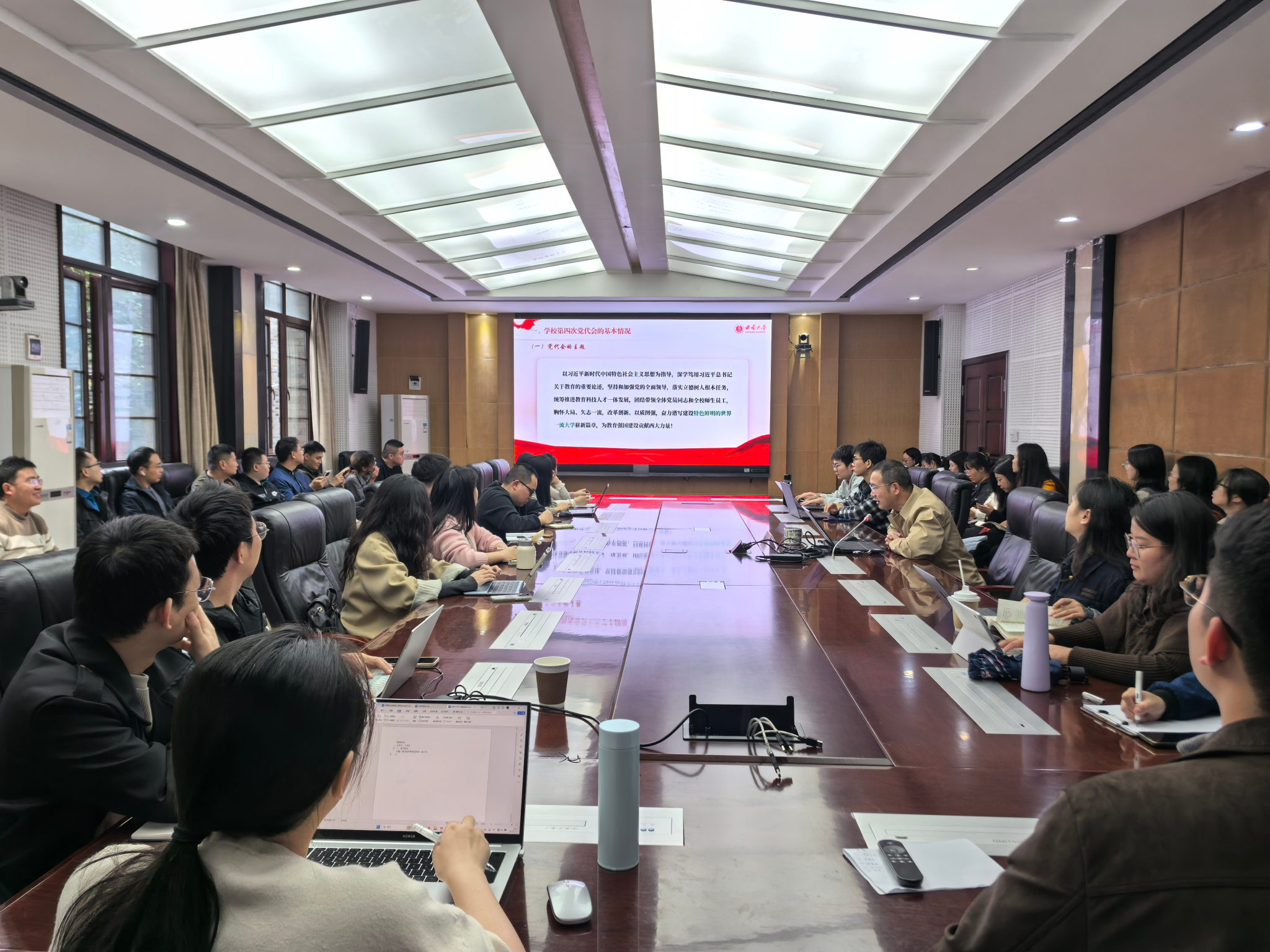 会上,宣讲人介绍了学校第四次党代会的基本情况,强调了要充分认识此次会议的重大意义;总结回顾了自第三次党代会以来,学校在党的建设、立德树人、学科专业、科学研究、师资队伍、社会服务、国际交流、内部治理、条件保障等方面取得的突出成就;阐述了学校面临的发展形势、大会确立的奋斗目标、三个阶段战略安排;并就未来五年学校发展的总体思路和重点任务进行细致讲解,牢记“三大属性”,坚持“六项原则”;强调坚定不移全面从严治党,切实提升党的建设质量等。引领青年学生作为学校的主人翁,以更加饱满的热情、更加昂扬的斗志、更加务实的作风,用实际行动深入学习贯彻学校第四次党代会精神。