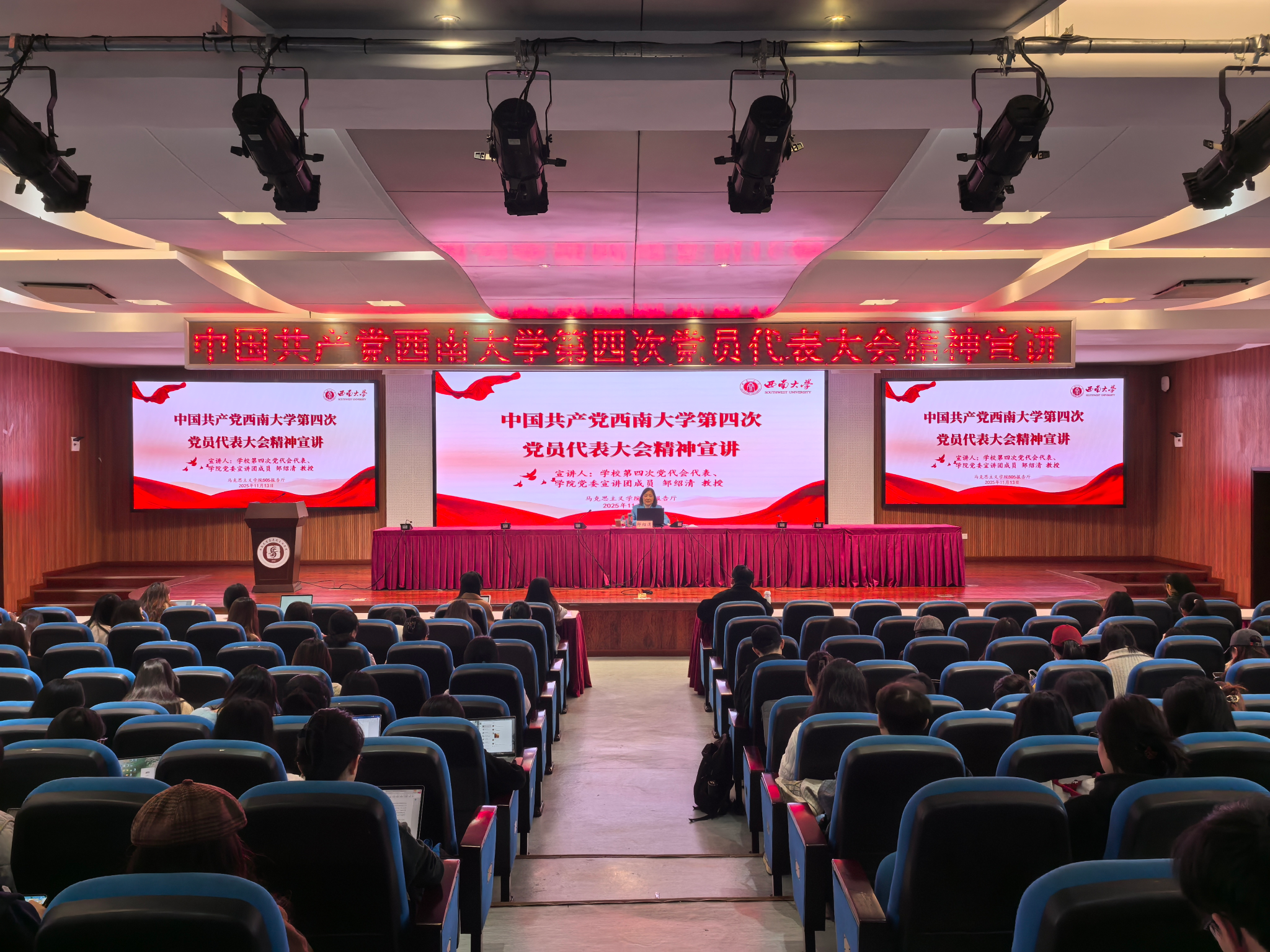 2025年11月7日何玲玲在学院505报告厅对学院全体2025级本科生进行宣讲