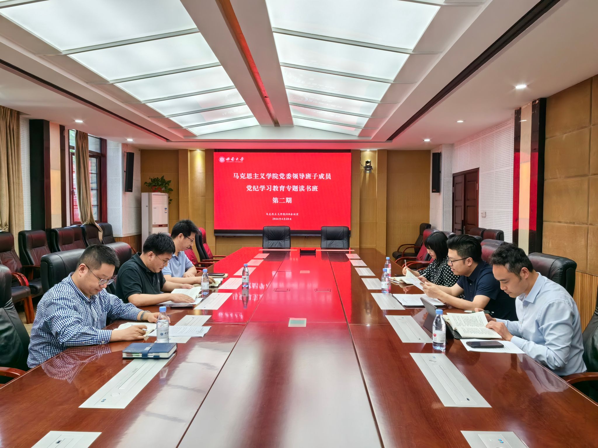 4月28日下午,学院党委召开党纪学习教育处级党员领导干部专题读书班第二期学习,学院全体处级党员领导干部参加,会议由学院党委书记吴文杰主持。