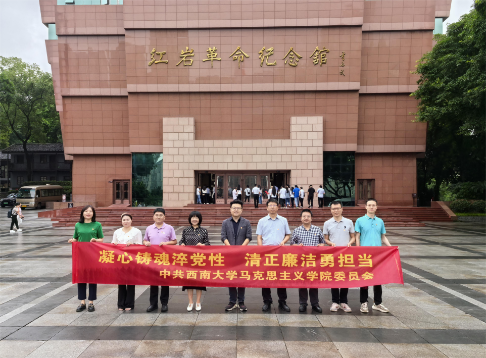 根据学校党纪学习教育的整体部署,深入感悟红岩精神,为切实提高党员干部党性修养,强化廉洁自律意识,筑牢拒腐防变思想防线6月28日,学院党委组织领导班子成员、两委委员及教师党支部书记赴红岩革命纪念馆开展“凝心铸魂淬党性 清正廉洁勇担当”廉洁教育研学活动。