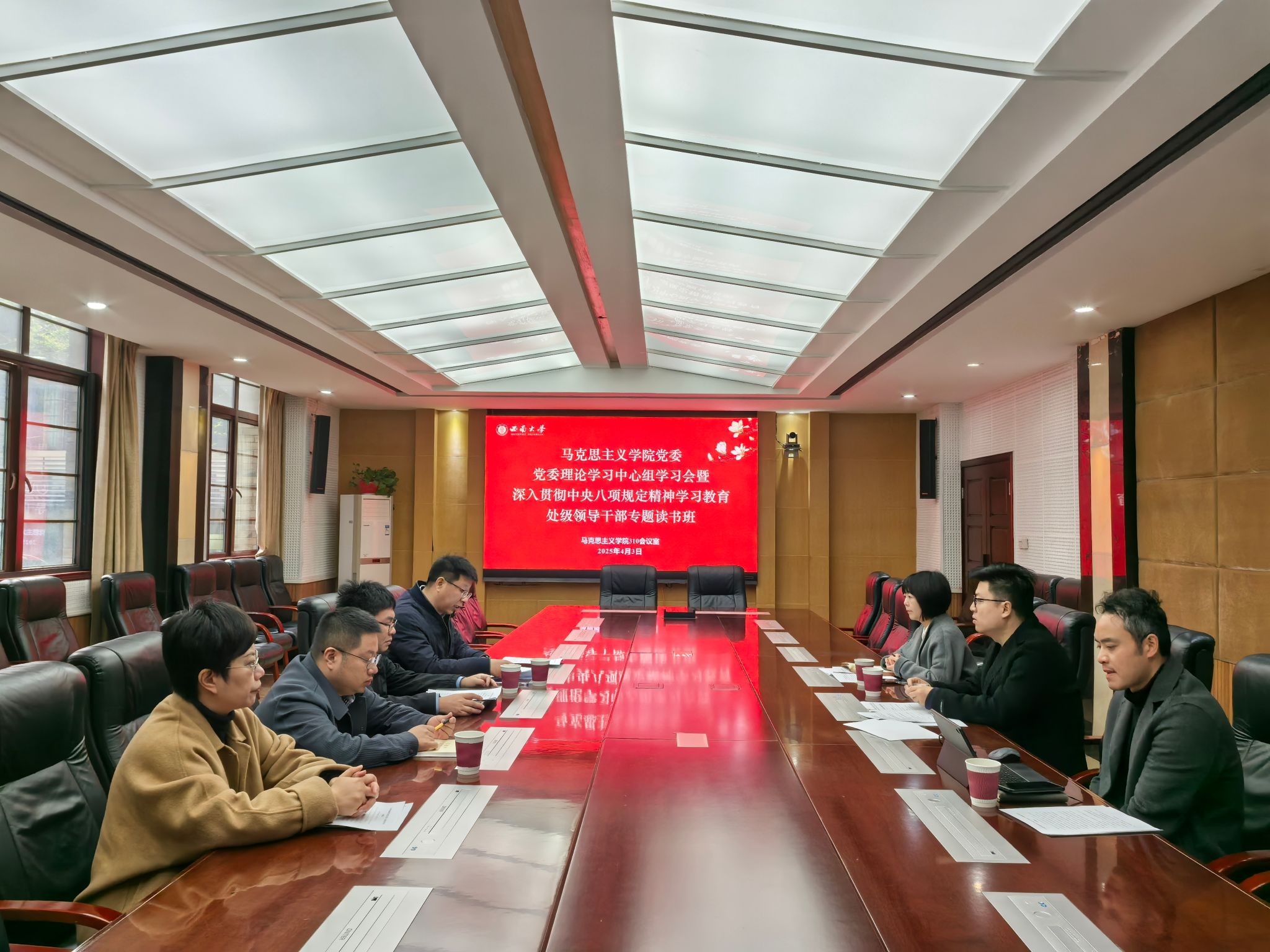 2025年4月3日上午,学院党委在学院310会议室召开党委理论学习中心组学习会暨深入贯彻中央八项规定精神学习教育处级领导干部专题读书班。本次学习的主题为“深入学习《中共中央八项规定》《中央八项规定的实施细则》”。学院党委委员参会,党委书记吴文杰主持会议。