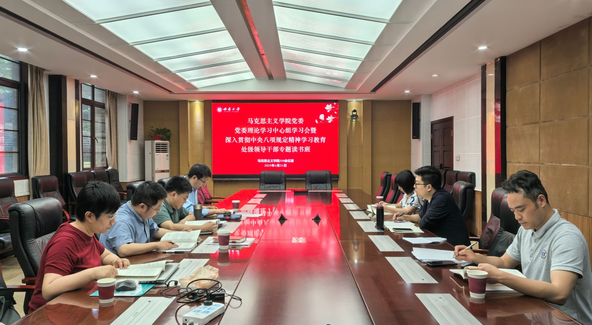 2025年4月21日下午,学院党委在学院310会议室召开党委理论学习中心组学习会暨深入贯彻中央八项规定精神学习教育处级领导干部专题读书班。本次学习的主题为深入学习《习近平关于加强党的作风建设论述摘编》。学院党委委员参会,党委书记吴文杰主持会议。