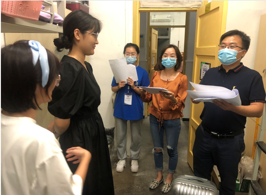 为帮助学院新生尽快适应大学生生活,9月20日晚上19时,学院党委常务副书记廖晓衡,党委副书记刘东升、曾艳,副院长何玲玲、吴艳东、靳玉军,以及辅导员、班主任、教学秘书一同走访2020级新生寝室,看望新生。