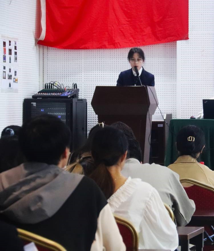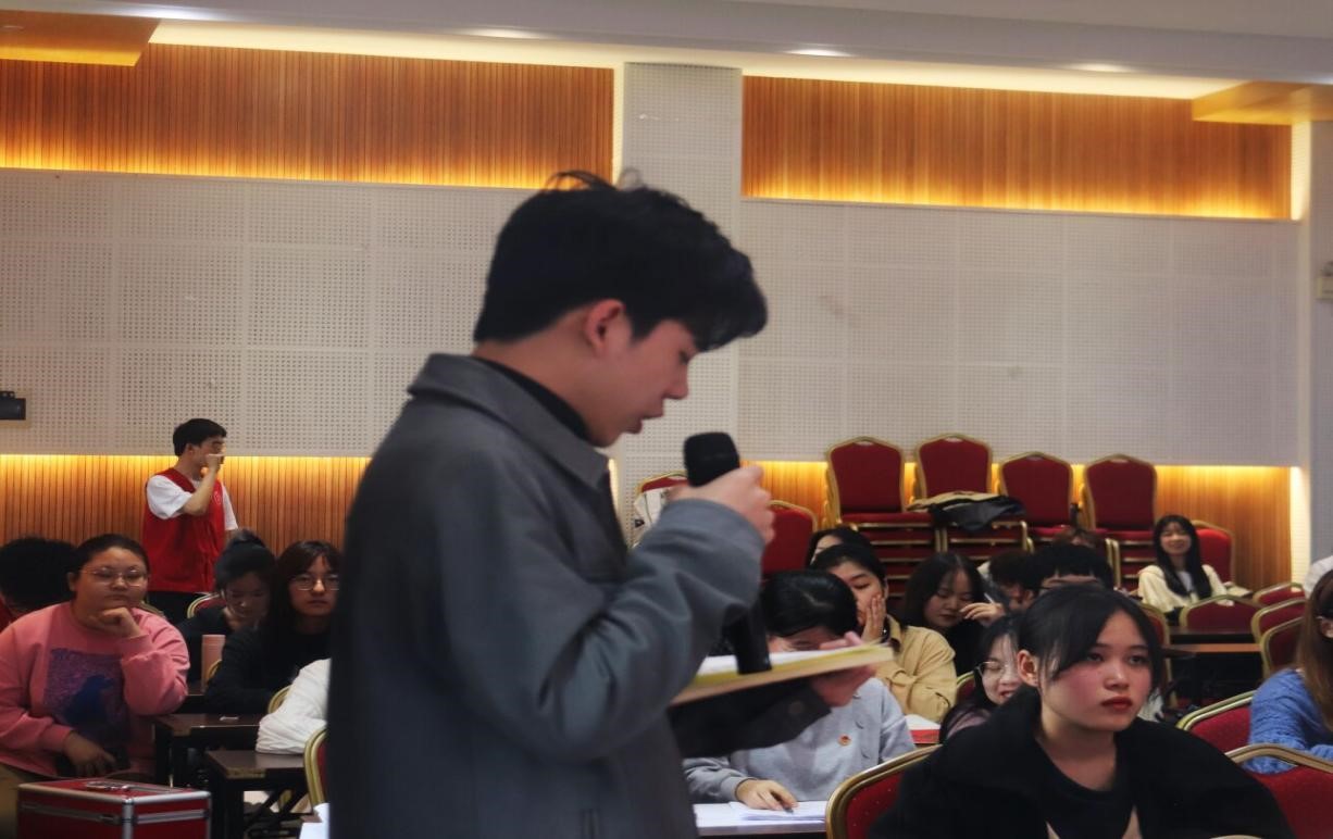 资源环境学院学院团委副书记钟杰孚代表学生评委进行点评,指出本次展演大会极具马院特色,彰显时代特质,对各支部建设和精神以及活动形式和内容都高度赞赏,并表示我院举办的展演大会为其提供了宝贵的学习经验。