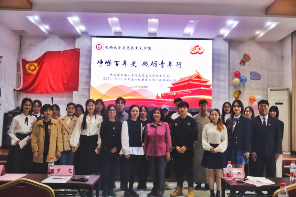 2022年4月15日15:00五四红旗团支部汇报展演大会在bv伟德国际1946501报告厅正式举行。学院关工委常务副主任曾光霞老师,学院团委书记、本科2020级辅导员李心悦老师,学院辅导员罗艺老师莅临现场,同时邀请各学院团委副书记及组织部负责人同曾光霞老师共同担任评委。