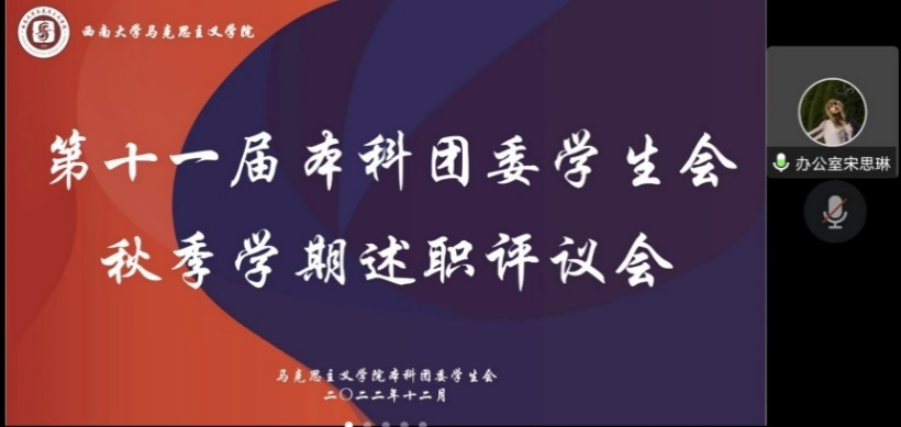 为深入学习贯彻党的二十大精神,进一步规范学生会述职评议工作,鼓励团委学生会成员以更高的标准要求自己,更好地开展下一学期的工作。特于2022年12月31日19时在腾讯会议线上举办bv伟德国际1946第十一届本科团委学生会秋季学期述职评议会。bv伟德国际1946第十一届本科团委学生会成员出席大会。