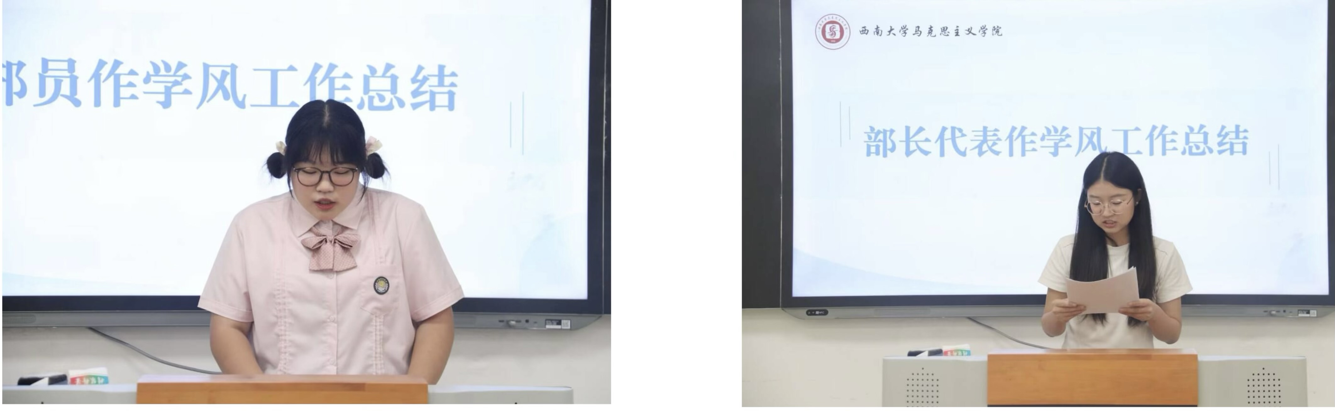 在年度工作总结环节中,学习生活部的8位部员依次介绍了大一学年的工作内容、工作经验和工作反思。在过去的一年中,他们踏实肯干,为学院本科生学风建设工作添砖加瓦,贡献力量。学习生活部部长许有萍总结了本学年学院本科学风建设工作的总体情况,她建议应将学风建设工作作为一个系统来设计,整合资源和平台,引导同学们专注学习、收获成长。