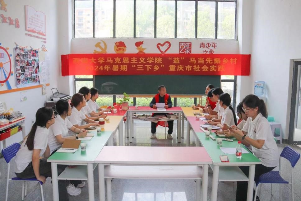 随后,bv伟德国际1946“益”马当先暑期“三下乡”团队前往重庆市石柱县中益乡华溪村,与中益乡社区文化服务中心负责人进行对接,开展了气氛融洽的座谈会。