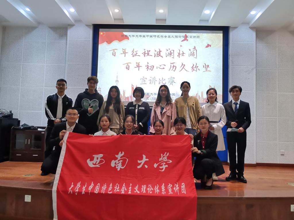 胜日寻史绩镛楼,逐鹿宣讲事事新。党的历史,是一部波澜壮阔的奋斗史,也是一部为人民群众谋幸福的历史。为铭记党史,提升团员宣讲能力,2021年4月2日中午,伟德victor1946大学生中国特色社会主义理论体系宣讲团(以下简称“学生宣讲团”)全体团员在bv伟德国际1946研究生教室三举行了“百年征程波澜壮阔,百年初心历久弥坚”宣讲比赛初赛。
