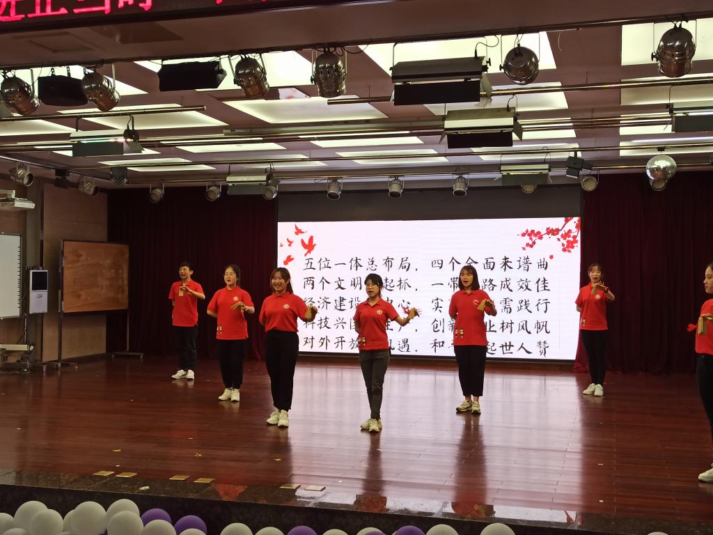 “南湖船,井冈山,党旗高举救河山。腊子口,娄山关,险阻难困英雄汉。”活动从快板声声中开始,小宣人手握快板、嘴吐唱词,通过活泼生动的快板舞表演,将党的百年历程展现出来,号召同学们爱党爱国、努力奋斗。这种创新的宣讲让观众们耳目一新——台上,宣讲员快板打得响亮,吐字清晰;台下,教师学生听得陶醉,连连叫好。从南湖建党出发,到抗日战争、解放战争、新中国建设、改革开放、新时代建设,这一段快板说下来,不仅新颖的宣讲形式深深地吸引了同学们,更使百年党史内容真正地走入了同学们的心中。
