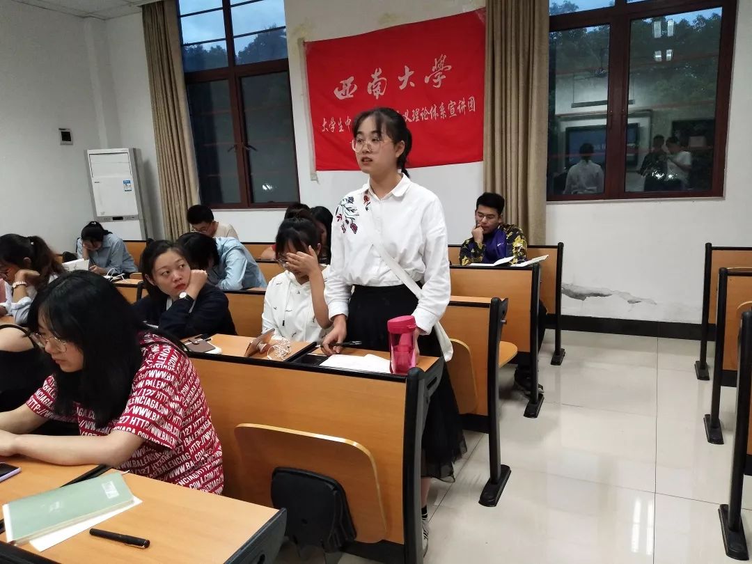在两位团员的精彩导读下,团员们积极思考,纷纷主动提出自己的见解。譬如,团员孙少威将传统职业观和当今社会广泛存在的职业观联系起来,批判了改革开放后职业选择中的拜金主义;团员刘露镁强调青年要对职业有独立思考,不要盲目听从安排、跟随大流;团员龚世雪对目前备受关注的女性就业歧视话题发表了极具现实价值的看法;屈玲娜等团员指出深厚的情怀作为内驱力在工作中的重要地位。