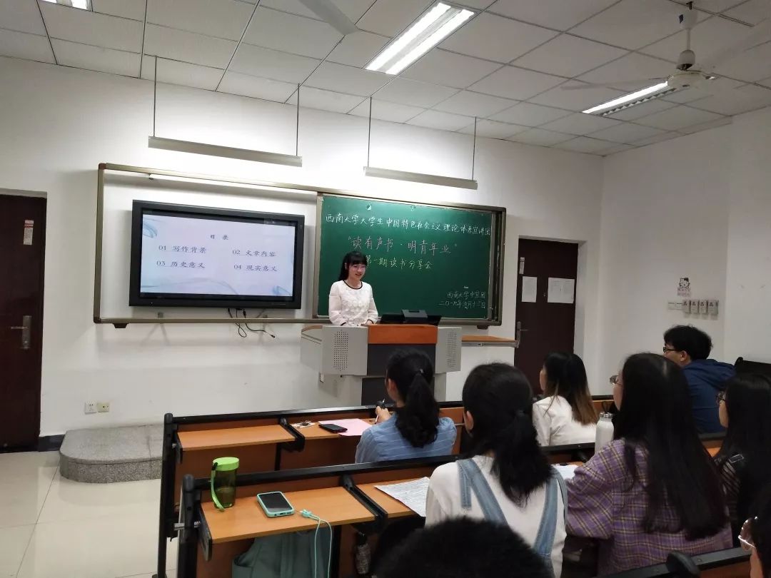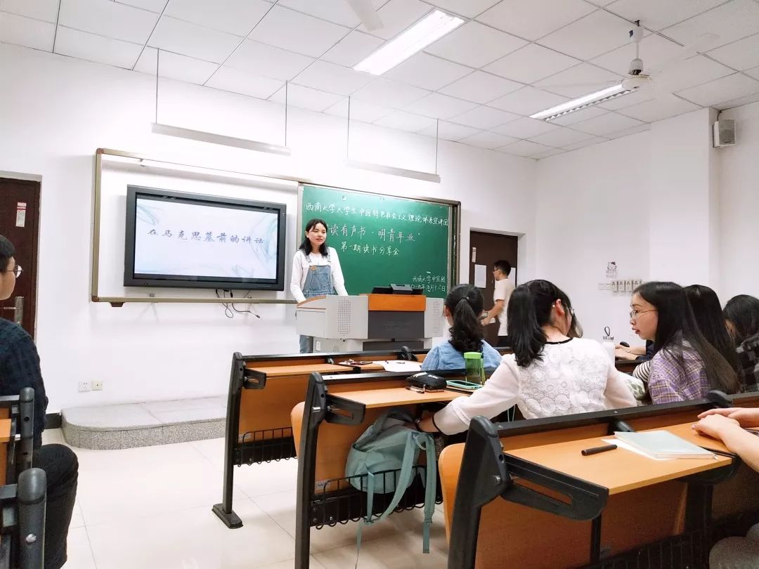 黑发当知勤学早,青年读书正当时。2019年5月12日晚7点,为深入学习马克思主义思想、感悟其精神品质,引导团员树立正确的人生观、价值观和职业观,伟德victor1946大学生中国特色社会主义理论体系宣讲团(以下简称“中宣团”)于研究生教室二举办“读有声书,明青年业”读书分享会,学习马克思的《青年在选择职业时的考虑》以及恩格斯的《在马克思墓前的讲话》,畅谈体会与思考,让思想的火花激烈碰撞。