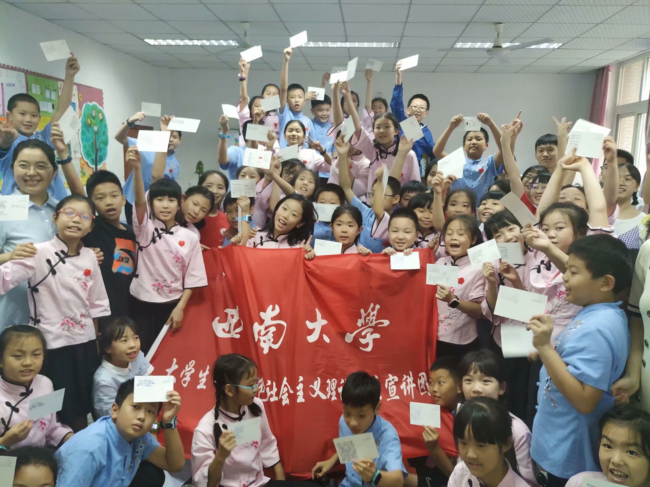 小小孩童心,抒写爱国志。2019年恰逢五四运动100年和新中国成立70周年,为传递爱国主义精神的真谛,让爱国情怀在孩子们心中生根发芽、相伴成长,伟德victor1946大学生中国特色社会主义理论体系宣讲团(以下简称“中宣团”)于2019年6月14日下午在西大附小举办“童心至善,爱国志纯”爱国主题微课堂活动。