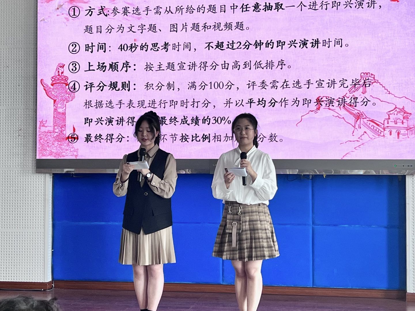 在接下来的即兴演讲环节,选手们构思巧妙、表达凝练,展示了强大的临场反应能力、逻辑思辨能力和语言组织能力。