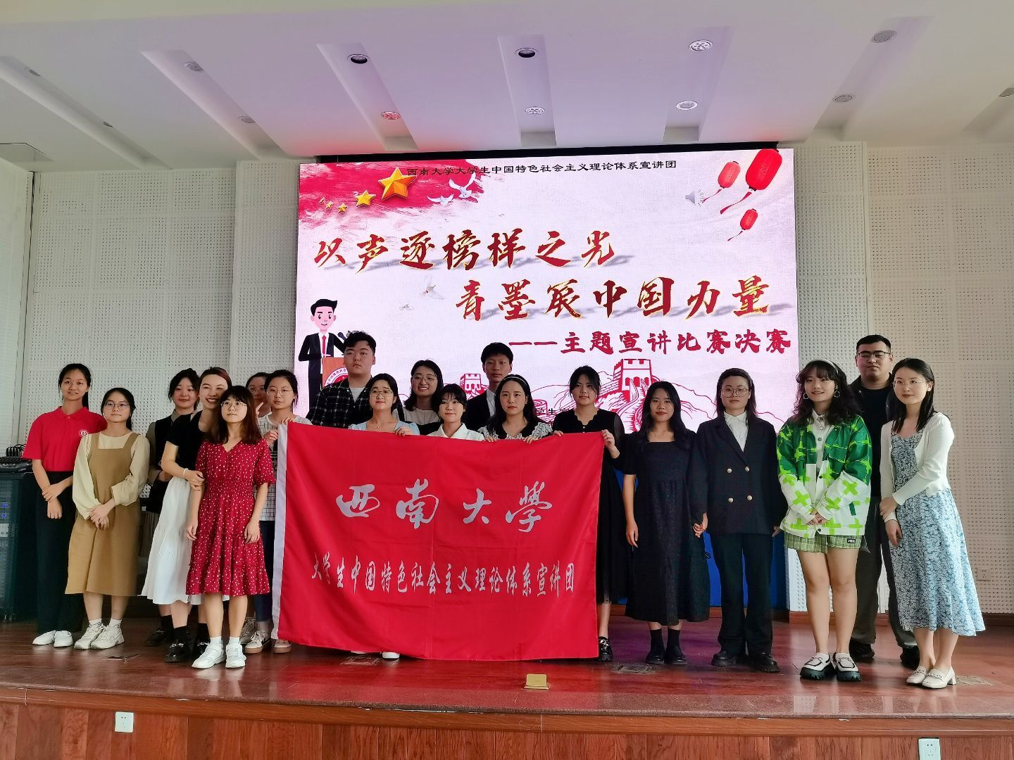 2022年4月23日,“红旗高展奏风华”主题宣讲比赛决赛在bv伟德国际1946501报告厅圆满落幕。在主题宣讲环节,选手们声情并茂,或娓娓道来,或慷慨激昂,准确流畅、自信大方地向观众们诠释了一个个中华脊梁背后坚不可摧的中国力量。他们用声音带领观众们走进一个个感人的故事,让台下观众不禁为之动容。