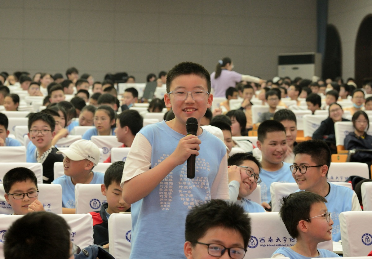 学生宣讲团为中学朋友们准备的宣讲内容更加通俗易懂、贴近生活,在传播理论的同时又不至于让听众感到枯燥无趣,以求达到最佳的宣讲效果。师雨曦以科教兴国篇《让科教之声唱响人才之歌》为开篇,通过叙述我国北斗事业从无到有的奋斗发展史阐述了科技、教育、人才三者结合所产生的伟力;