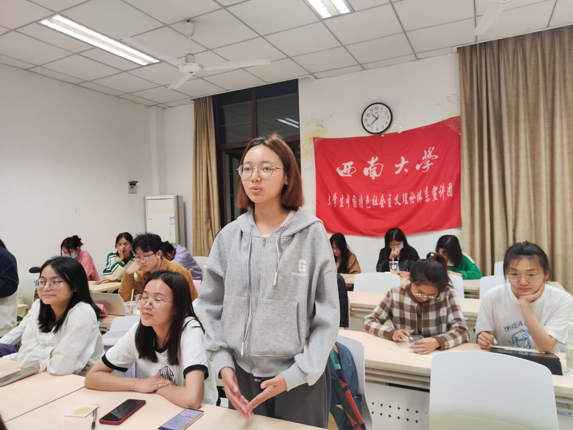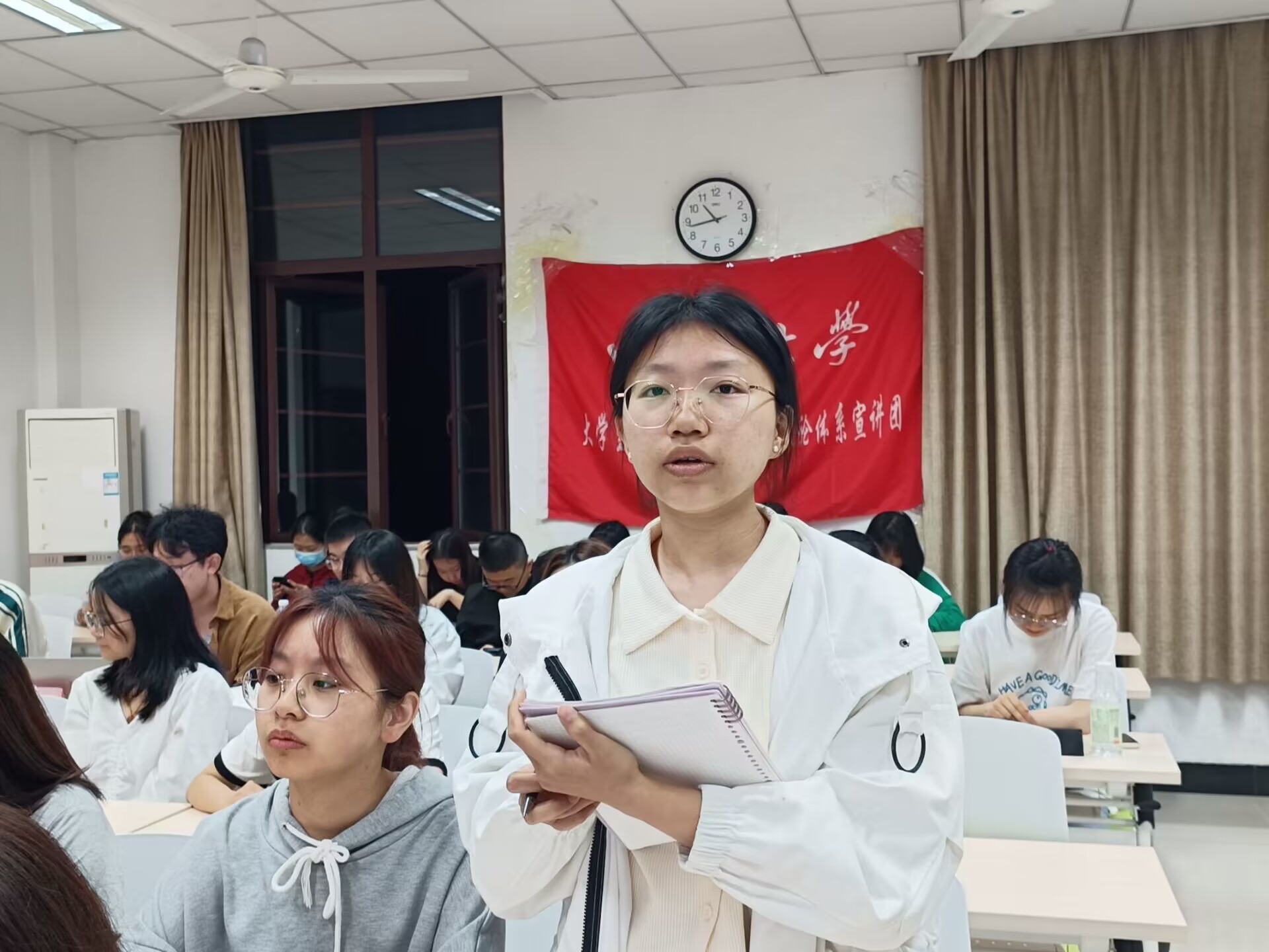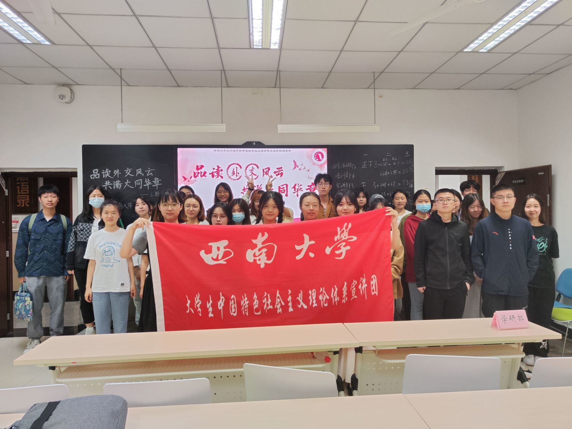为引导团员们学习外交知识,感受大国外交,坚定“四个自信”,伟德victor1946大学生中国特色社会主义理论体系宣讲团团支部(以下简称“学生宣讲团团支部”)特于2023年5月9日22:10在bv伟德国际1946研究生教室一举办“品读外交风云,共谱大同华章”主题团课。
