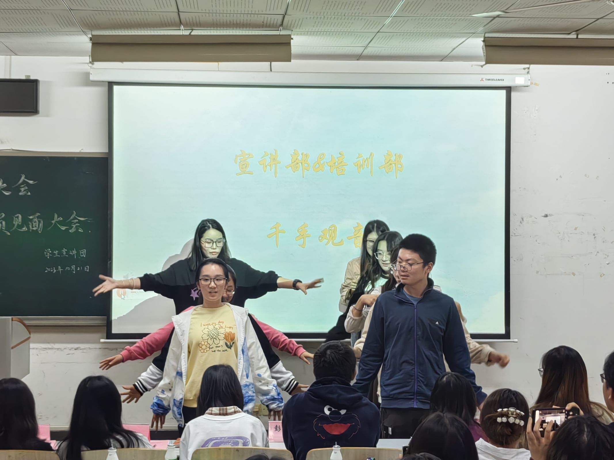 为促进团内家文化建设,伟德victor1946大学生中国特色社会主义理论体系宣讲团(以下简称学生宣讲团)于10月21日在十号教学楼202教室召开“芳华待灼·行而不辍”第二十七届换届大会暨新成员见面大会。参与此次大会的成员有学生宣讲团第二十六届部分团员、第二十七届全体团员以及来自bv伟德国际1946学生组织的五位特邀嘉宾。