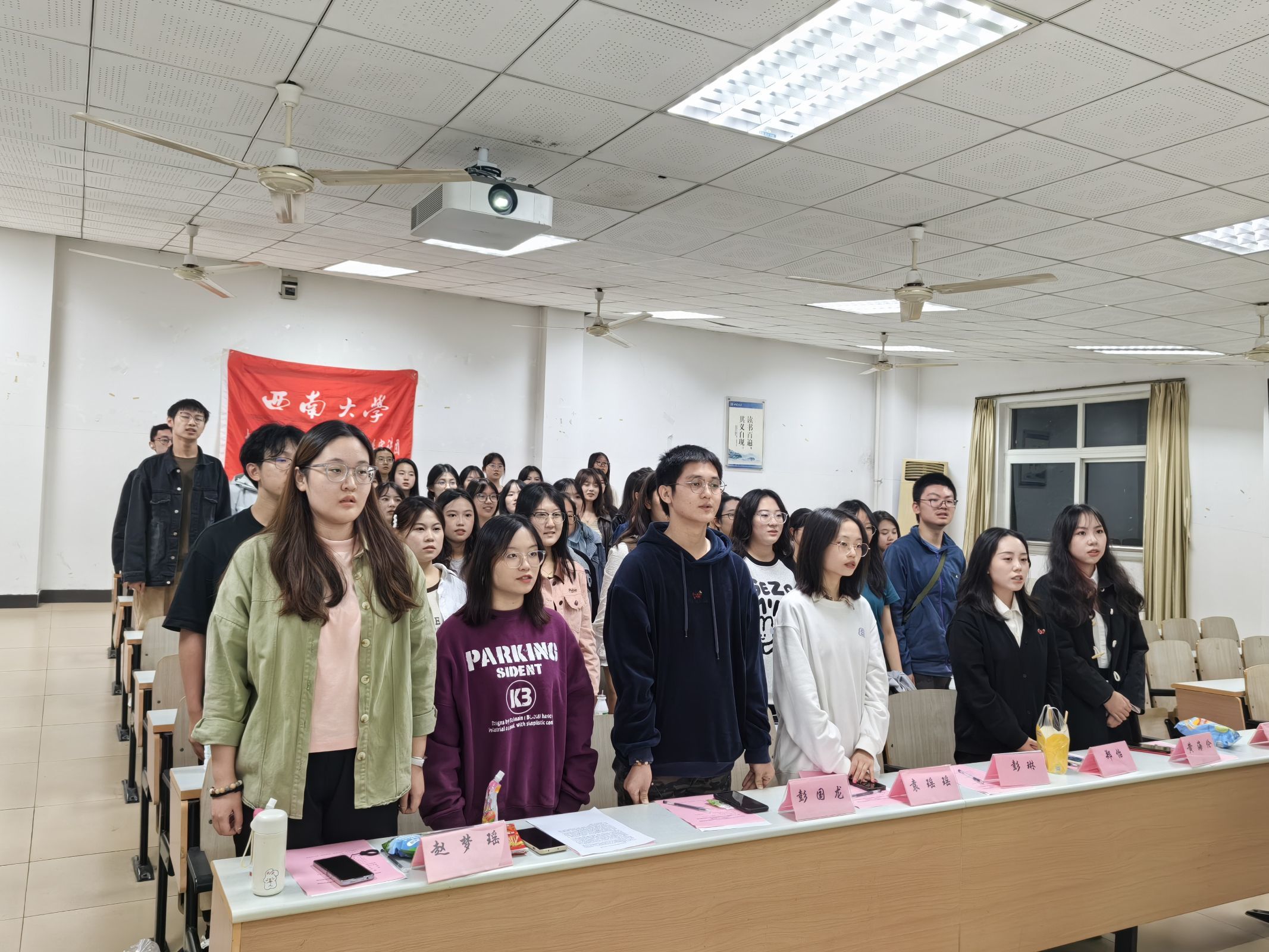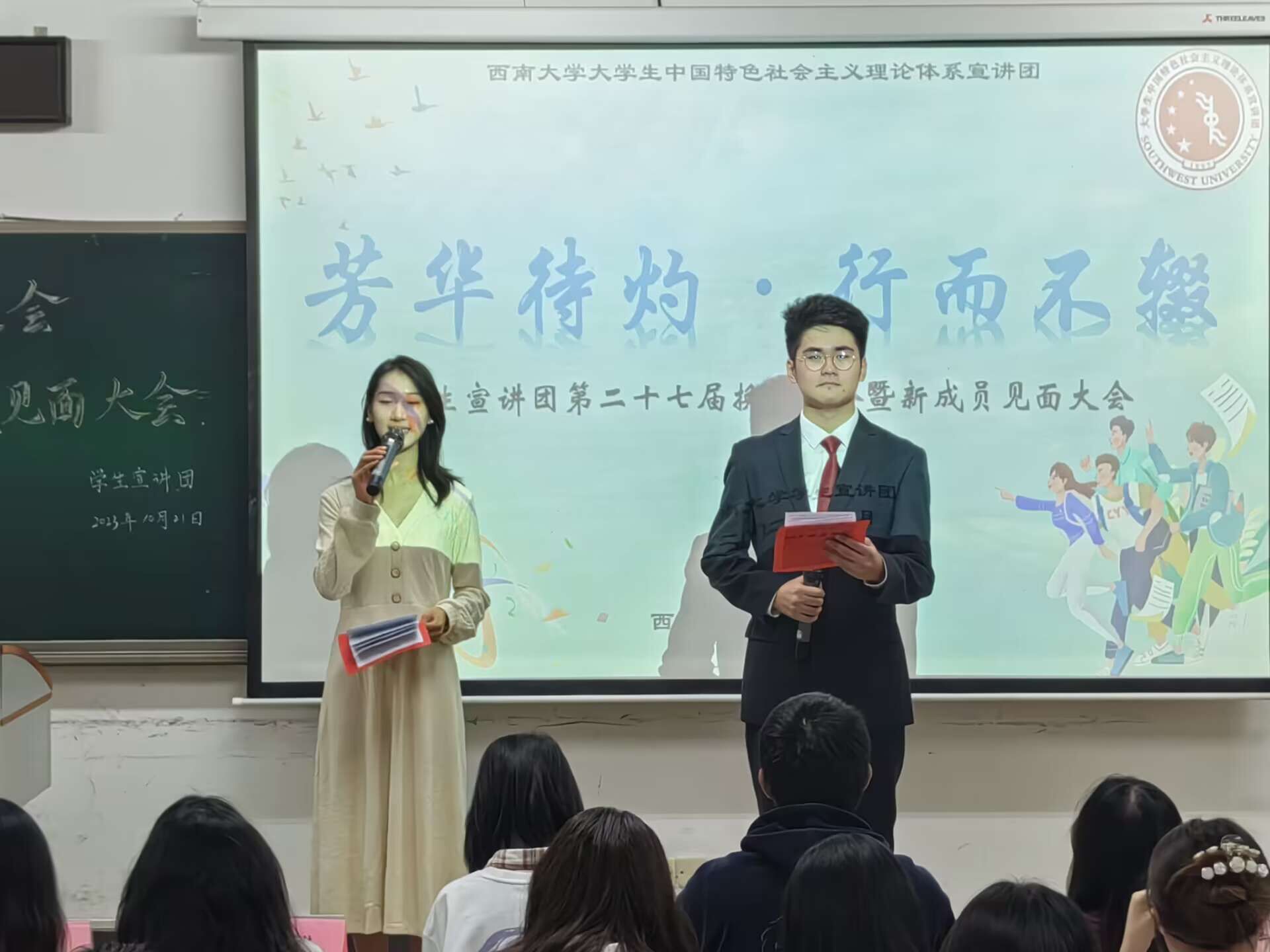 树木在森林的依偎中成长,星辰在银河的辉映中璀璨。在“追忆过往,薪火相传”环节中,全体参会人员一同观看了第二十六届团员们制作的惊喜视频,精彩纷呈、爱意满满。新团员们还收到了写有师兄师姐最深切祝福的明信片,加深了新一届小宣人们对学生宣讲团的归属感。