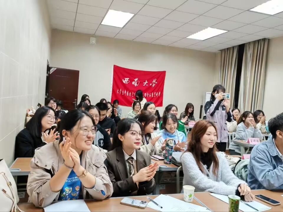 119日,“泼墨挥毫写风雨,谈霏玉屑绘征途”宣讲技巧培训活动在国治院3101举办。在第一个环节中,第26届优秀宣讲员刘钰煊师姐为新团员们带来示范宣讲《置身混沌,探求光明》,刘钰煊师姐娓娓道来的宣讲紧紧牵动着听众,深深触动着在场每一个人;快板队成员为团员们带来精彩的快板舞表演,在欢快的快板声中,团员们感受到了快板的魅力。随后,宣讲部部长胡晓雯对新团员们进行宣讲技巧培训,宣讲部副部长刘林耀进行撰稿培训,培训部副部长黄诗睿和部长王婷分别为团员们进行了宣讲礼仪培训以及快板技巧培训,部长们的倾囊相授让新团员们受益匪浅。作为学生宣讲团的一员,每一位小宣人都以真心充盈自我,以热忱传递理论。在之后的宣讲过程中,希望新团员们保持初心、坚定立场,不断在实战中苦练能力、锻炼自我。