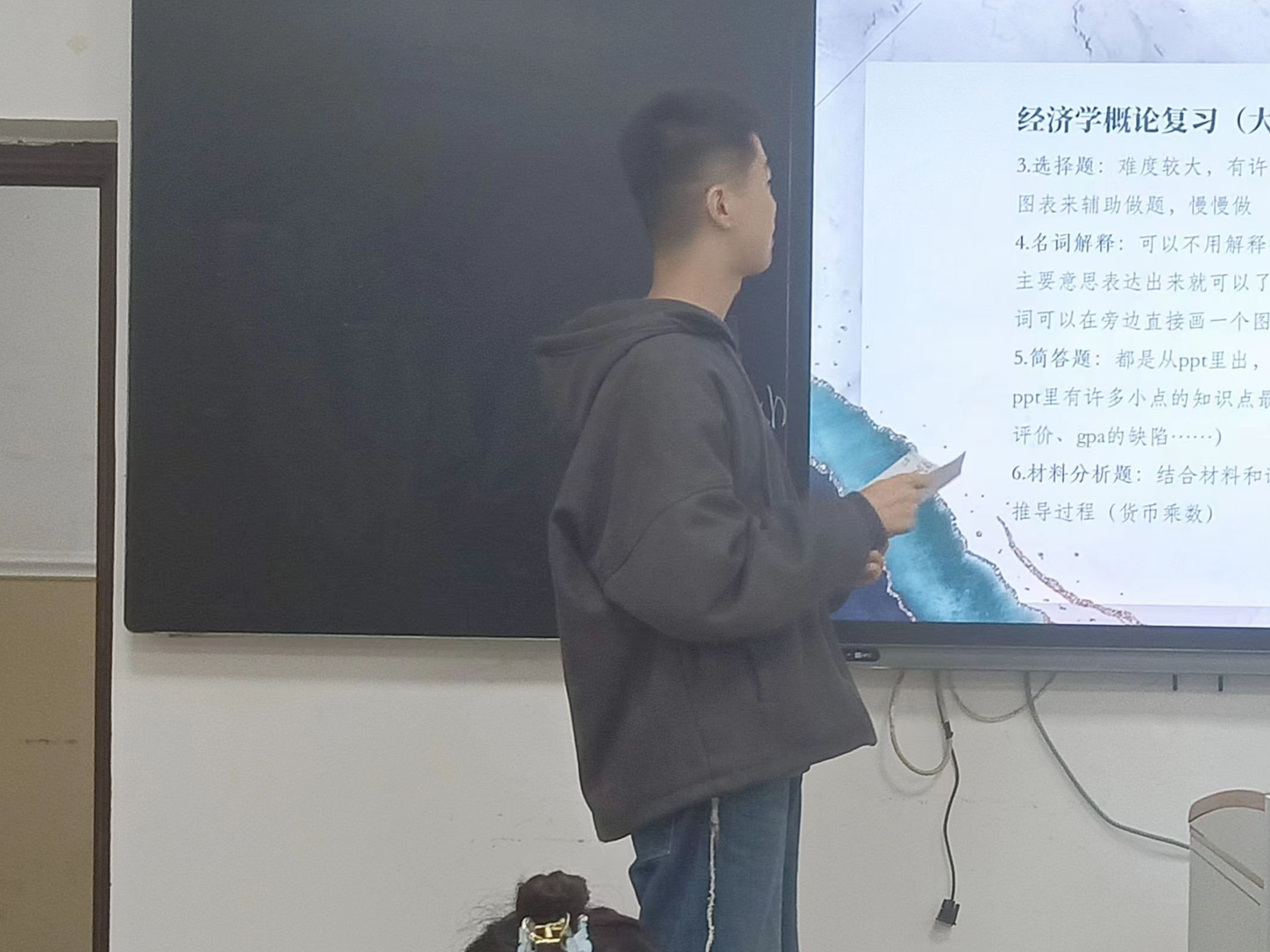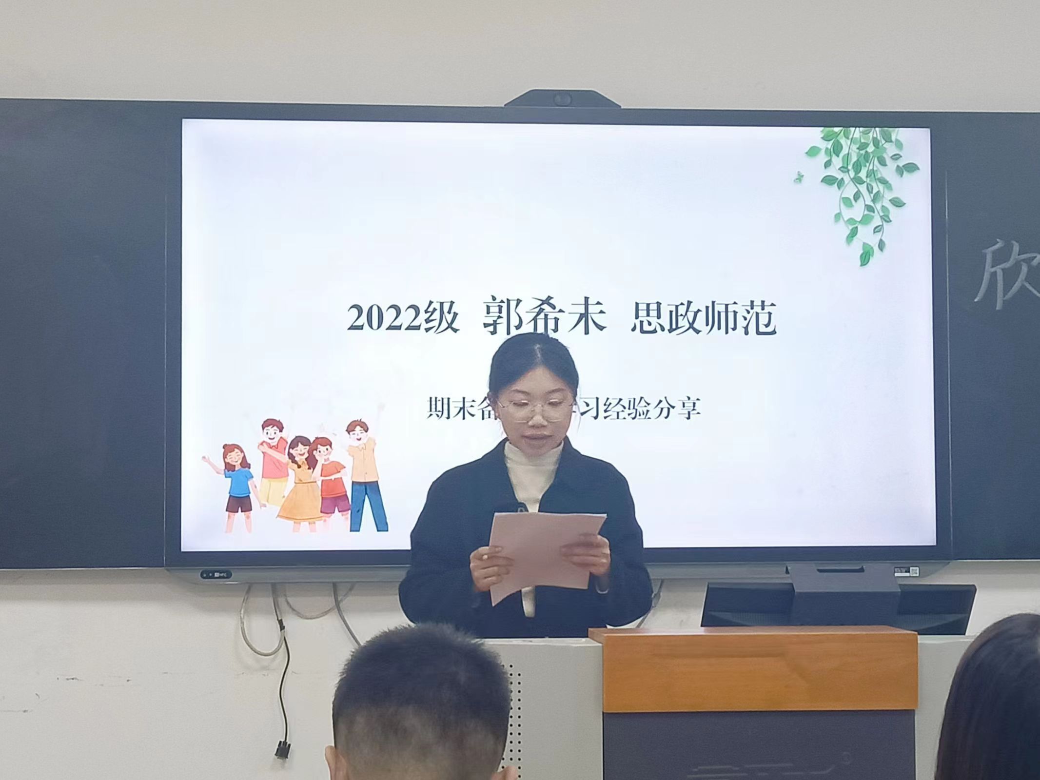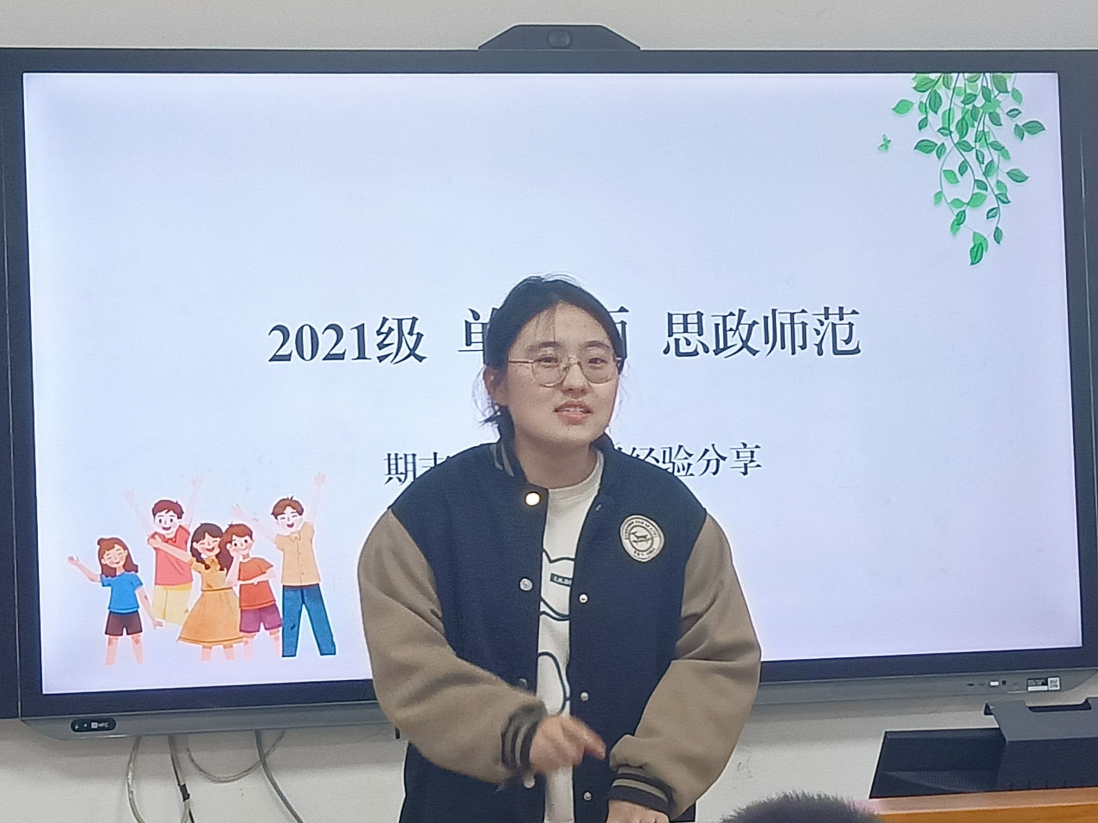 赠人玫瑰,手有余香。在“借风唤花醒,聊赠一枝春”环节中,2022级马理论专业的邴子慧和思想政治教育(师范)专业的郭希未分别进行学习经验分享。她们从学习经验、备考心态以及时间安排方面为2023级的团员们答疑解惑、指引方向。邴子慧立足期末备考的宏观安排,强调要合理规划时间,提前准备好复习内容,制定详细的复习计划,既要实现知识的全覆盖,也要突出重点进行强化记忆。郭希未则立足具体学科,分科强调了复习重点及各科老师的风格偏好,为2023级的团员们提供了详细的期末备考指南。两位优秀同学的精彩分享,不仅为团员们指明了正确的学习方向,更为其今后的学习提供了不竭动力。