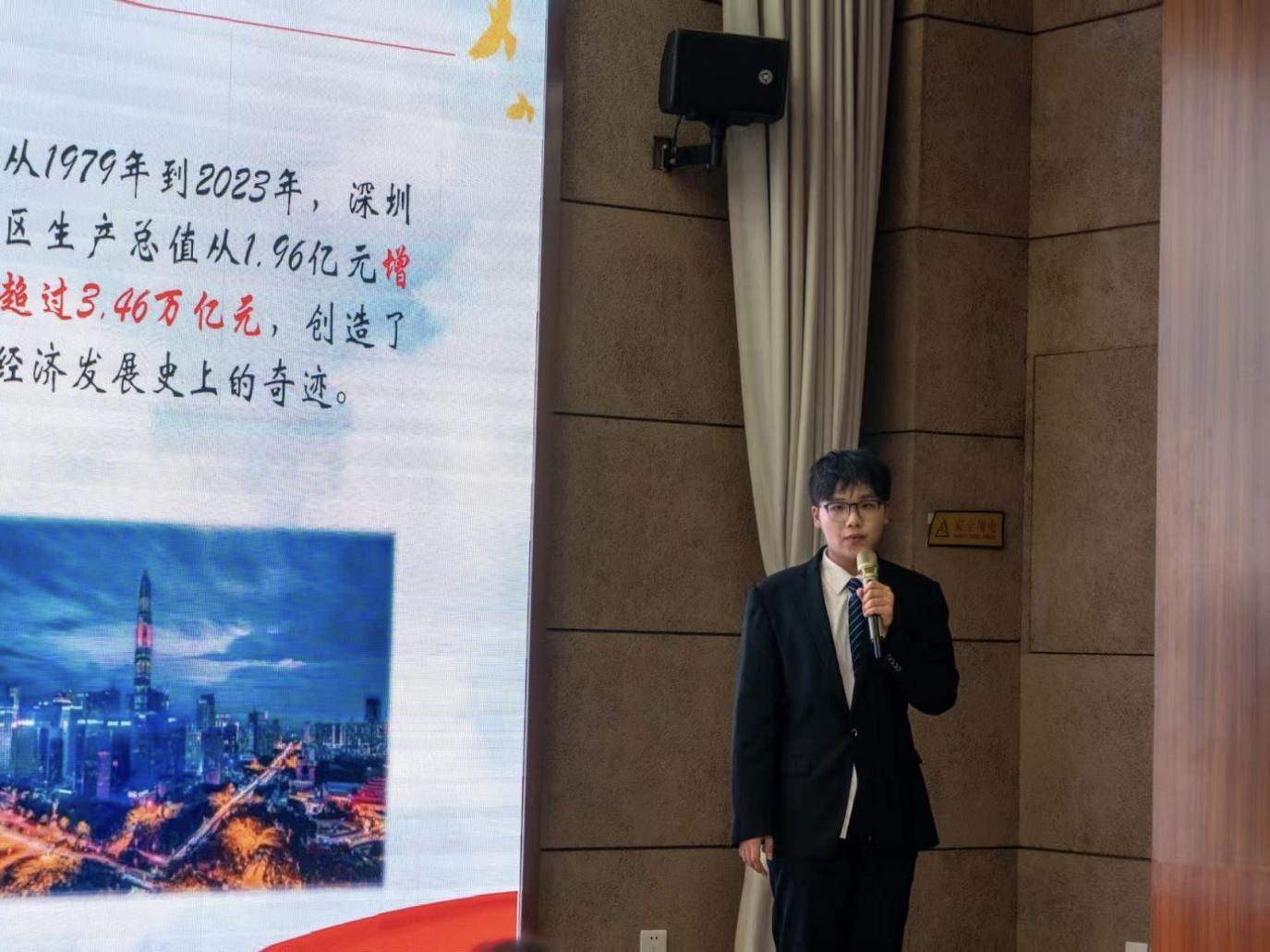 本次宣讲挑战赛旨在深入学习贯彻党的二十届三中全会精神,深学笃行习近平总书记关于全面深化改革的一系列新思想、新观点、新论断。自2024年10月启动以来,吸引了来自西南地区的四十余所高校数百名选手的积极参与。初赛总共收到了100余份参赛作品,包含学生宣讲团参赛作品在内的12份作品进入决赛。本次比赛面向西南地区各高校本科生和硕士研究生开展。比赛过程中,参赛选手卢政淇通过声情并茂的宣讲,带领听众深入浅出地了解高水平社会主义市场经济体制,在比赛现场取得良好反响。