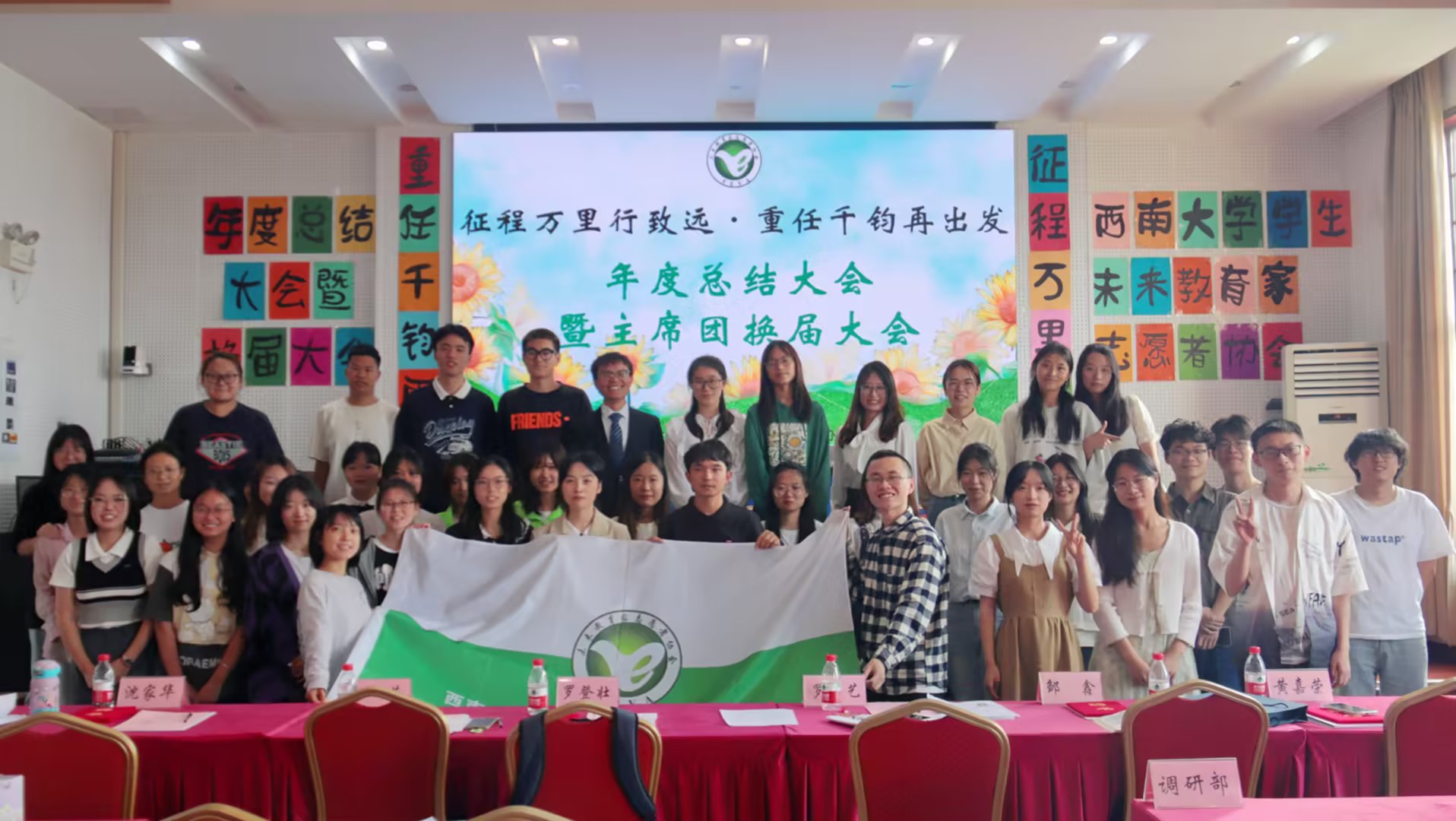 为加强协会学生骨干队伍建设,提升协会组织力与凝聚力,伟德victor1946学生未来教育家志愿者协会(以下简称“未协”)于651400在学院501报告厅“征程万里行致远·重任千钧再出发”年度总结大会暨换届大会。莅临本次活动的嘉宾有协会指导老师罗艺老师,未协全体成员参与本次活动。