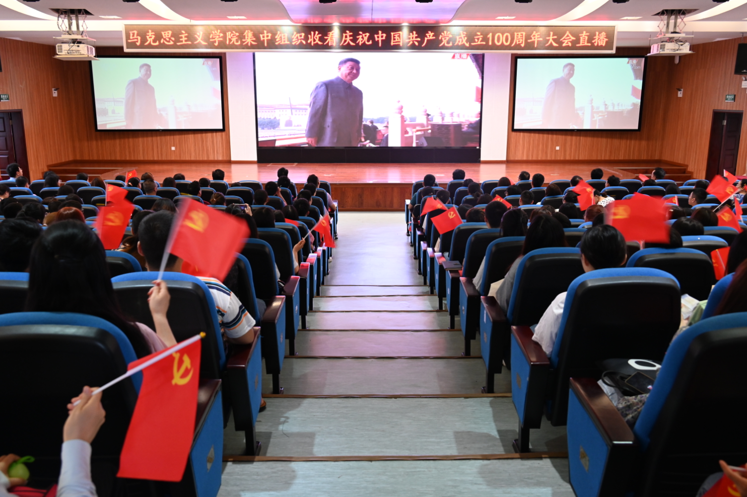 7月1日上午8时,bv伟德国际1946党委组织师生员工在学院505会议室集中收看了庆祝中国共产党成立100周年大会直播,认真聆听习近平总书记在庆祝中国共产党成立100周年大会上的重要讲话,共同见证中国共产党百年辉煌征程。在场师生激情满怀的与直播现场的观众一同挥舞党旗、高唱国歌,热烈鼓掌。