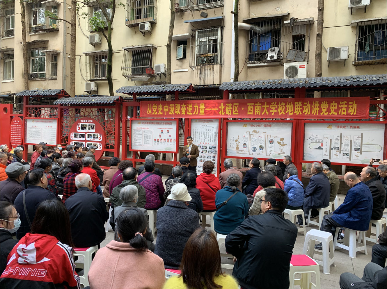 二是加强党史宣讲。学院充分发挥党史党建学科的人才优势,积极推荐和组织党史学习教育宣讲团,组建了专家教授、青年教师和大学生三级宣讲团,形成了体系完备、师生联动的宣讲模式。推荐黄蓉生、潘洵、白显良、吴艳东4位教授为重庆市委宣讲团成员,深入到重庆市级机关和高校宣讲。精锐出战,选派8名专家教授助力北碚区校地联合宣讲团,深入北碚区机关、企业开展宣讲。精心选派24位专家教授组建学校党史宣讲团,深入到学校各学院、各部门和校外企事业单位进行宣讲。“大学生宣讲团”创新宣讲形式,采用快板、情景演绎、隔空对话等形式,深入伟德victor194636个学院学生群体、中小学、乡村开展生动的党史故事传颂。“学生寝室党史故事会”“班级党史故事每日一讲”,学党史、讲党史蔚然成风。党史宣讲活动掀起热潮,得到新华社、人民网、光明网、中国教育新闻网、重庆日报、当代党员等媒体关注报道。