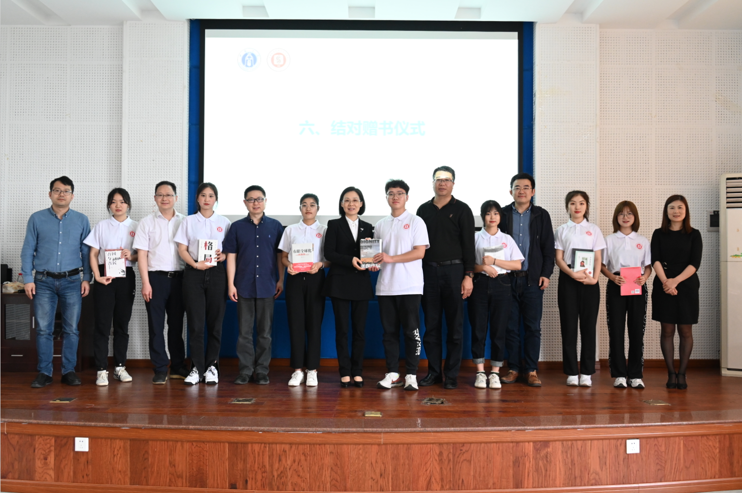 在结对赠书环节,党委组织部全体老师为同学们赠送了精心挑选的书籍,并鼓励大家要广泛涉猎各类书籍,拓宽知识边界,建立流动“知识补给站”。